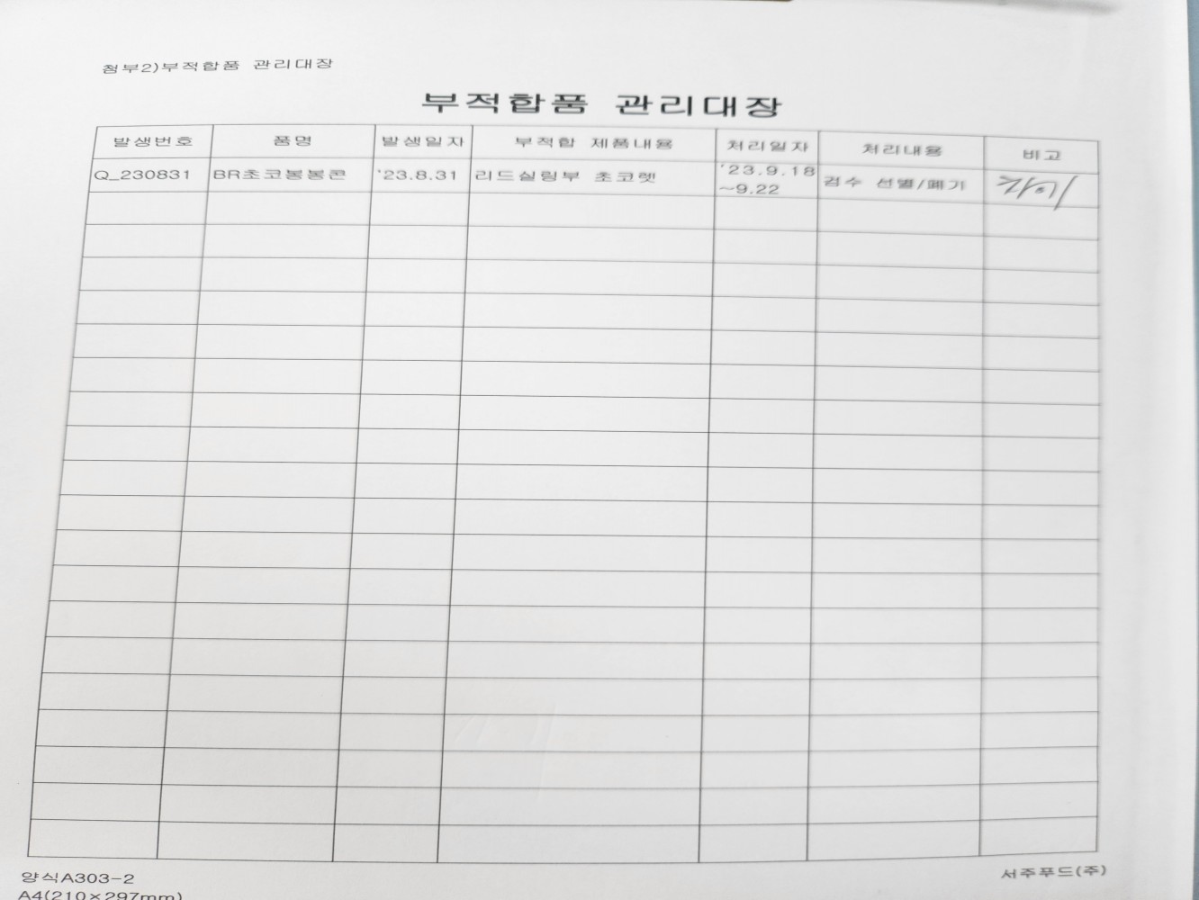 9. 부적합 제품 관리 시스템이 구비되어 있는가