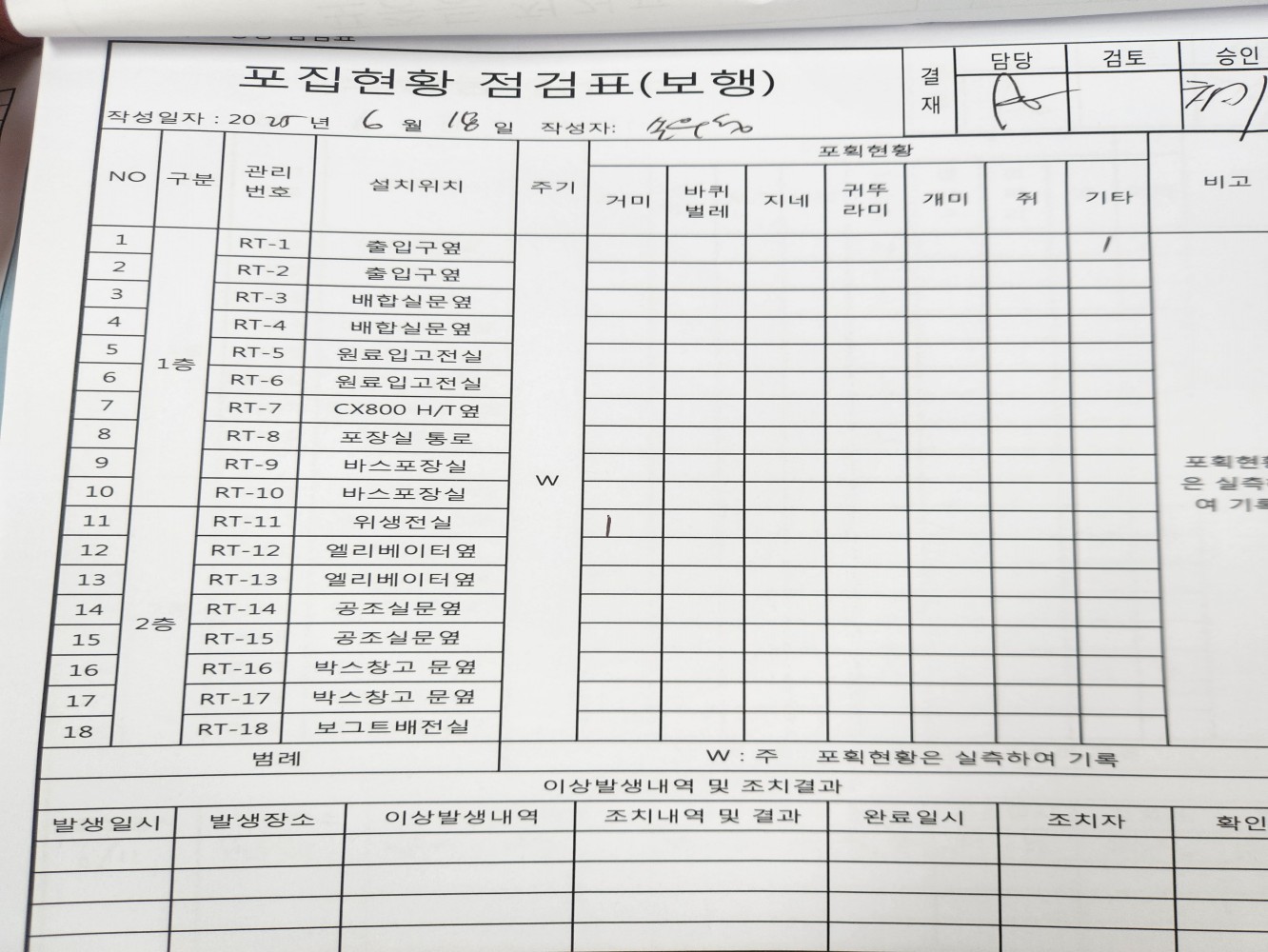 22. 작업장 내 해충 및 해충 흔적이 관찰되는가