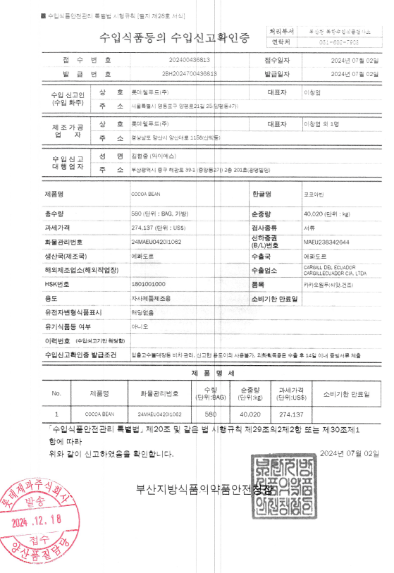 1. 품목제조보고서가 구비되어 있으며, 실제와 일치하는가
