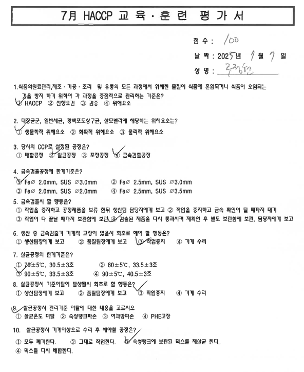 29. HACCP 교육이 주기적으로 이행되고 있는가