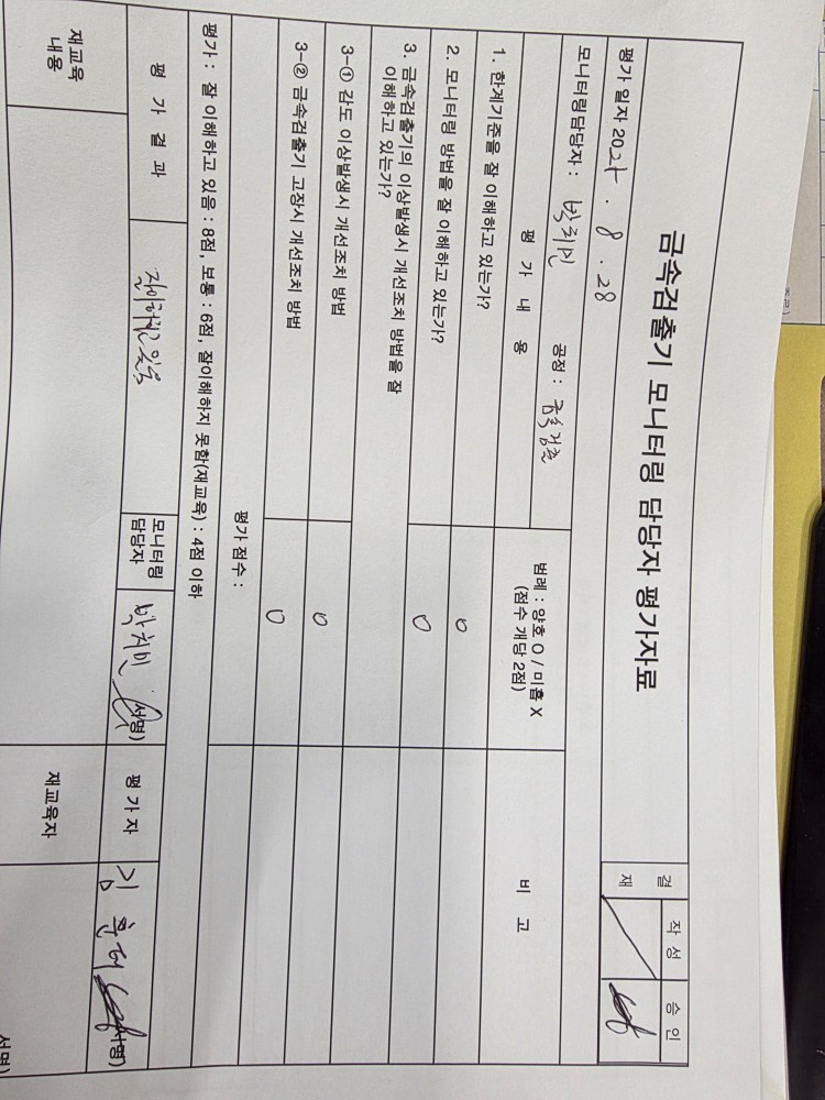7. 이물 검출 장비가 구비되어 있으며, 적절히 운영되고 있는가
