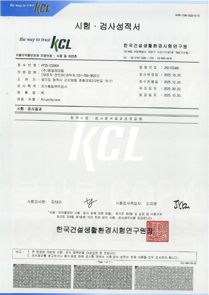1. 원부재료 및 포장재 입고 검사 및 검수를 실시하고 있는가