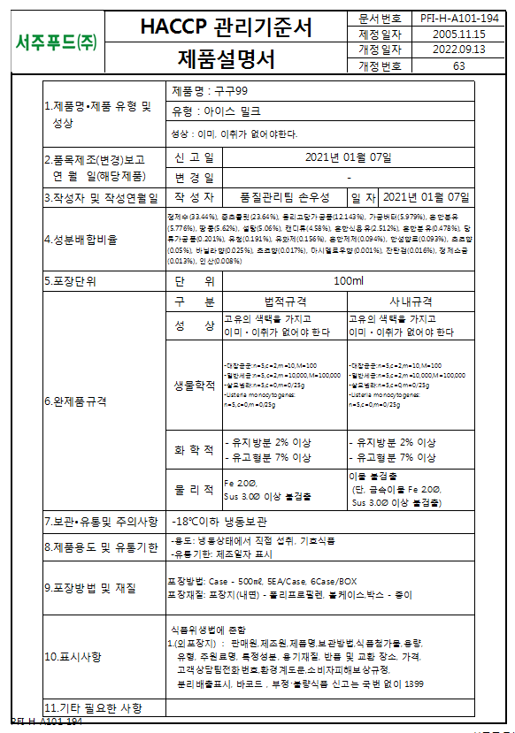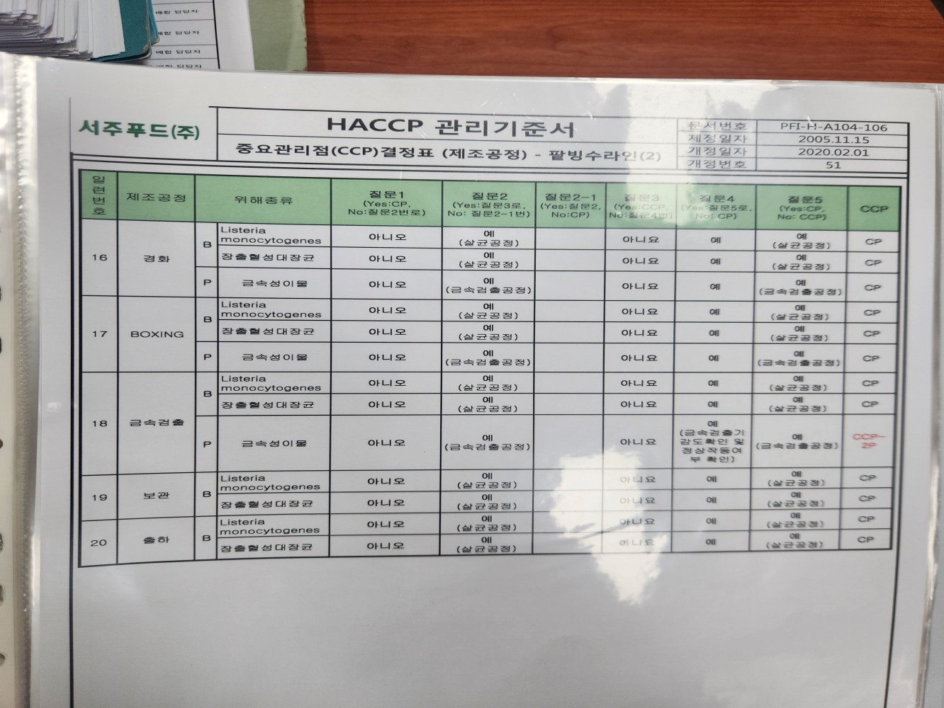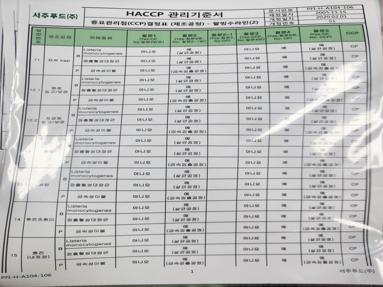 27. 원료별, 공정별 위해요소 분석이 실시되었으며, CCP 결정 및 운영이 적정한가