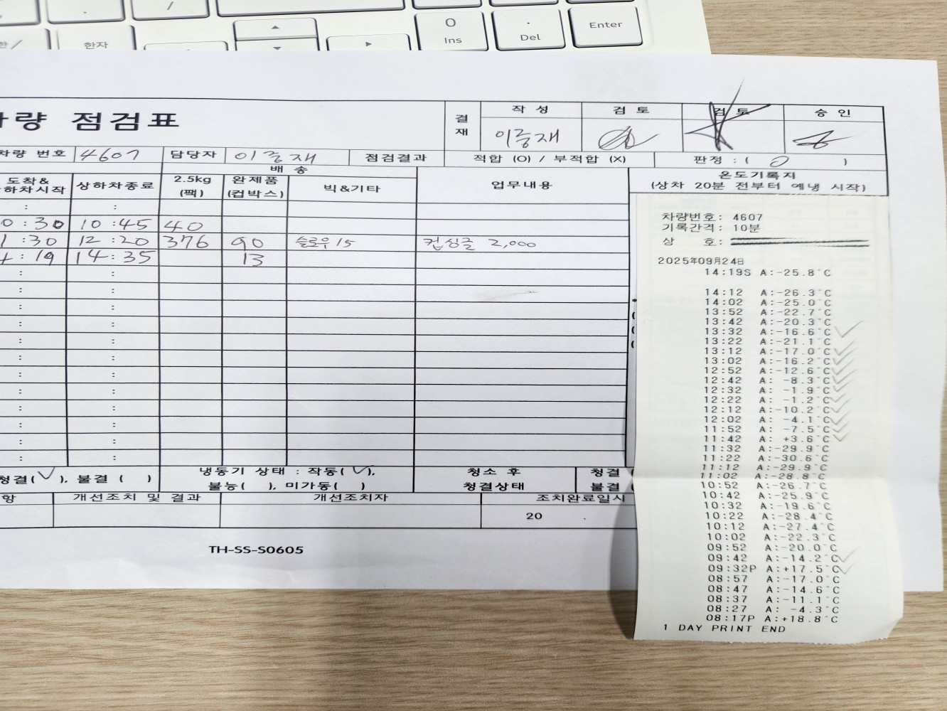 1. 운송 차량은 청결하며, 유통 온도가 관리/기록되고 있는가