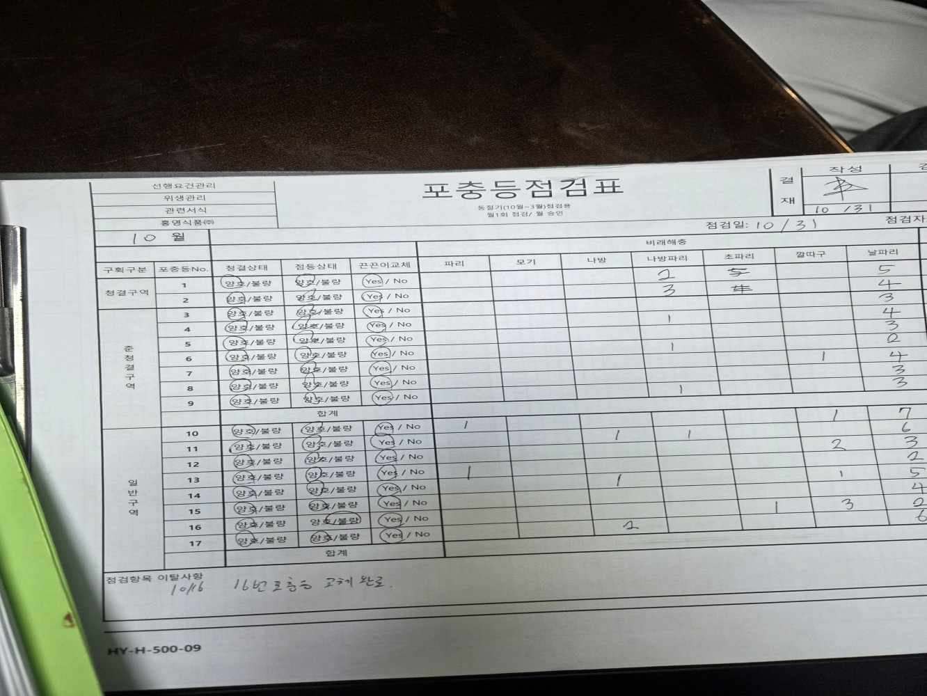 20. 작업장 내 해충 및 해충 흔적이 관찰되는가