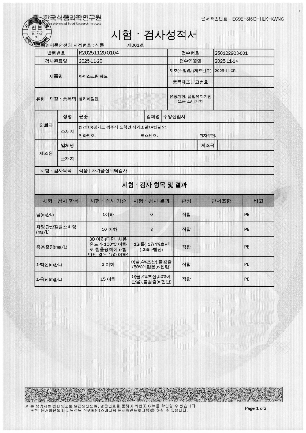 1. 완제품 표시사항의 원산지 표기는 올바르며, 관련 서류가 구비되어 있는가