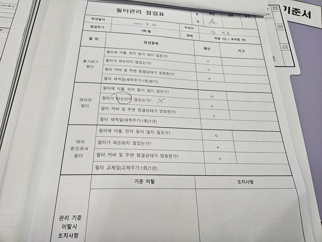 9. 압축 공기의 관리 기준이 구비되어 있으며, 적절히 사용되는가