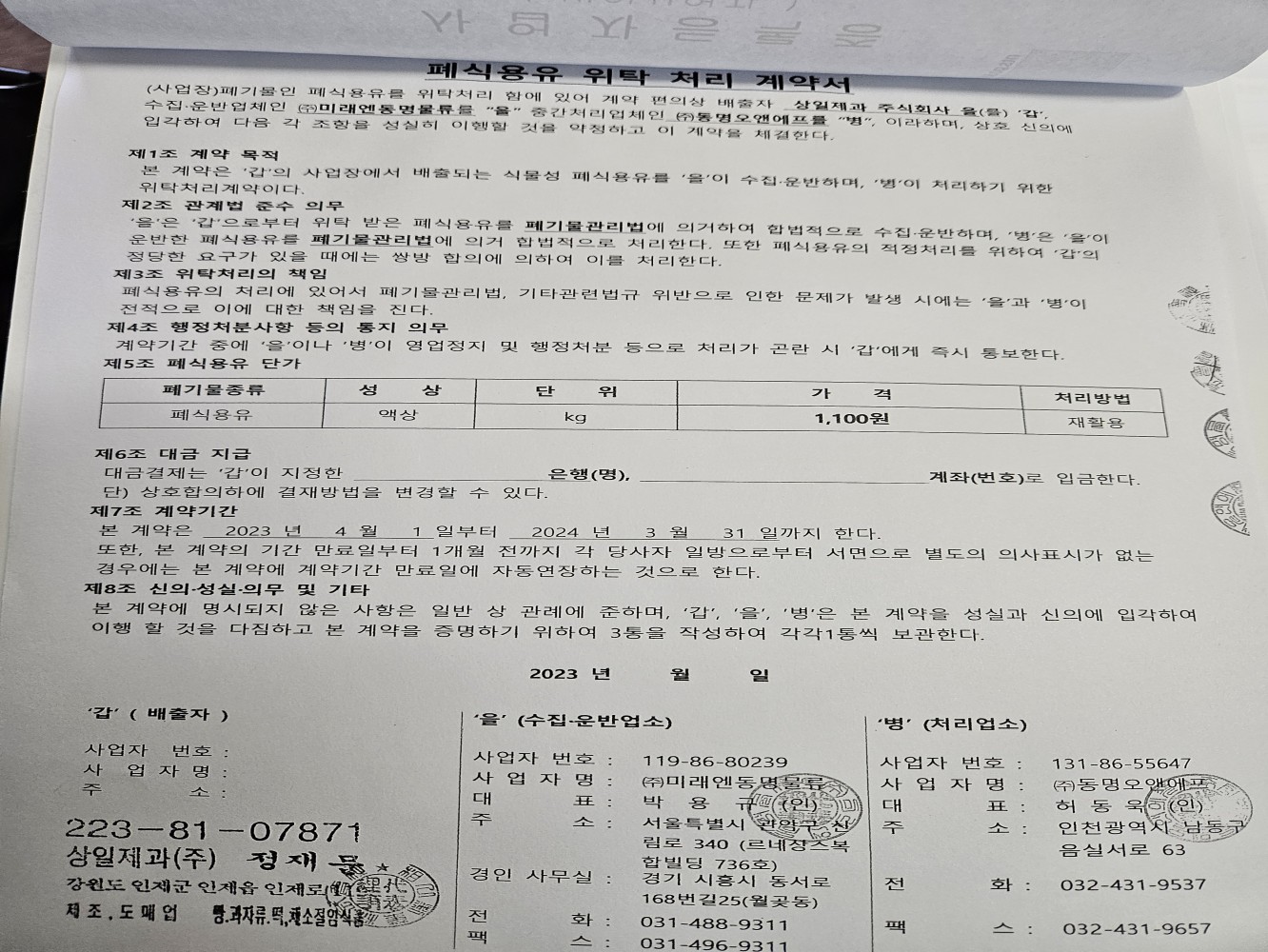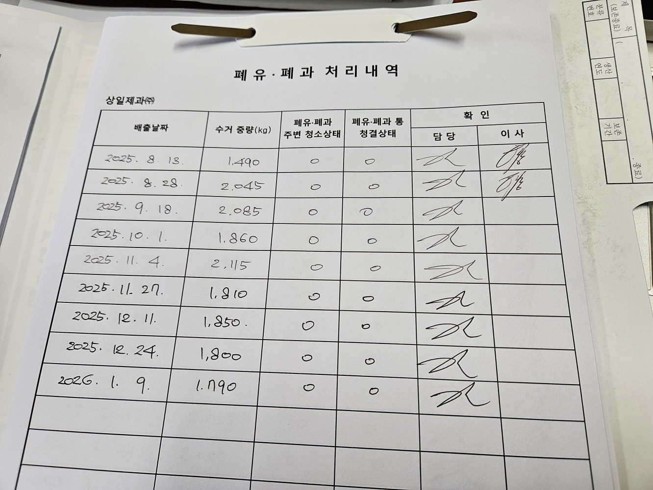 11. 폐기물/폐수는 적절히 처리되며, 관련 기록물이 구비되어 있는가