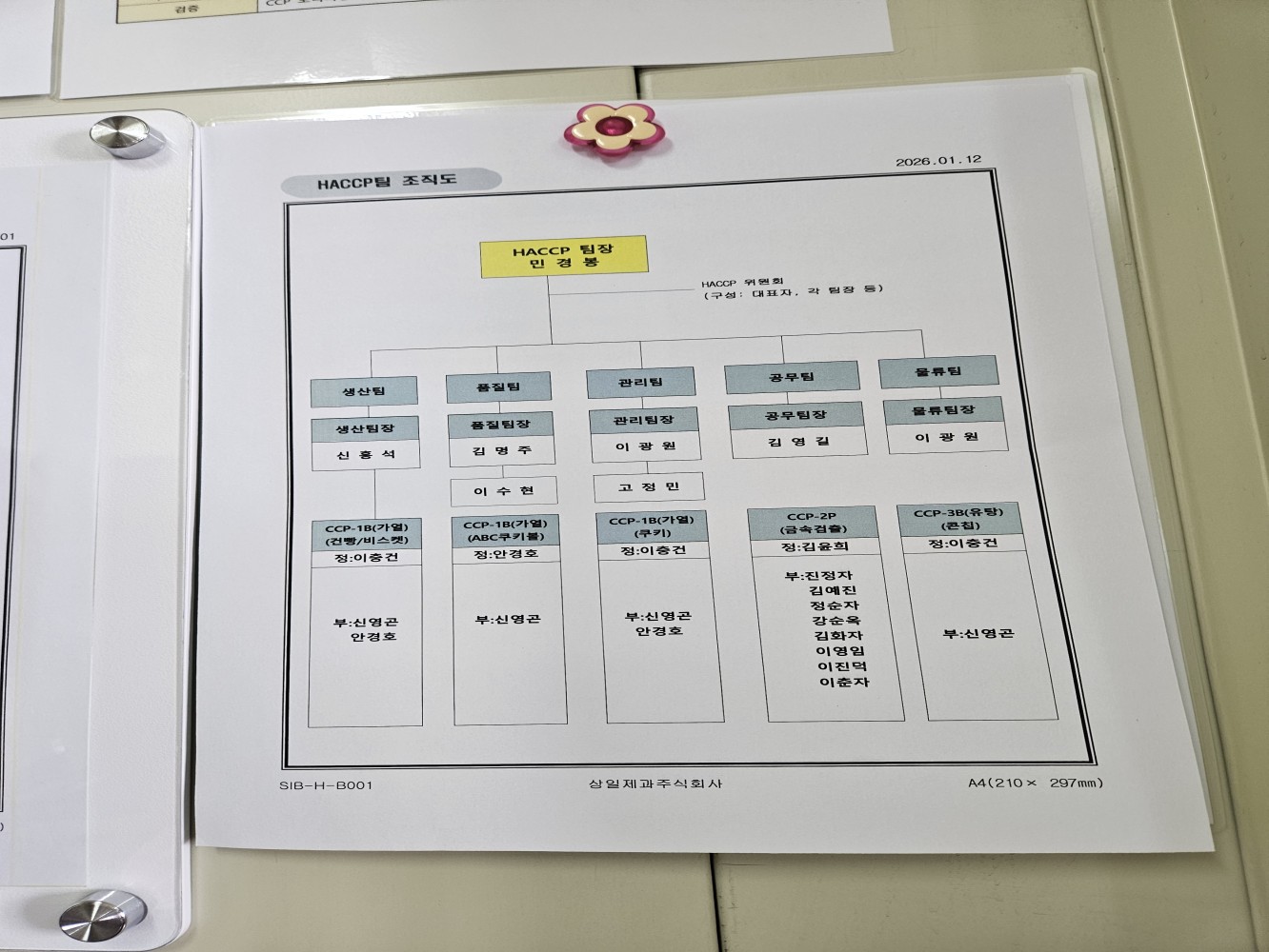 14. HACCP팀은 적절히 구성되어 있으며, 최신 버전으로 업데이트되어 있는가