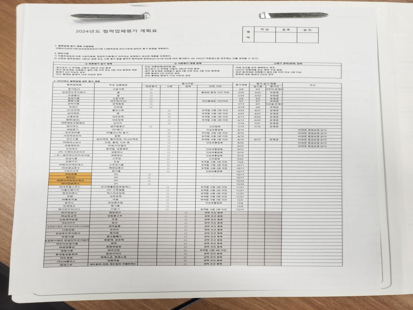 1. 공급자 평가 관리 시스템이 구비되어 있으며, 적절히 운영되는가