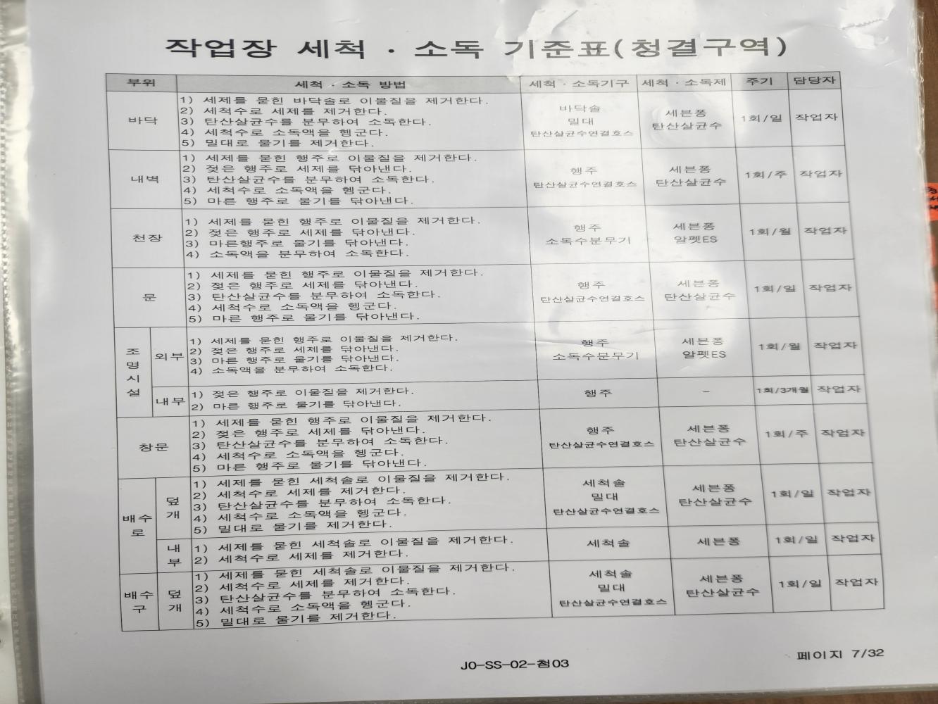 18. 설비는 청결하며, 자체 세척/소독 기준에 따라 관리되고 있는가