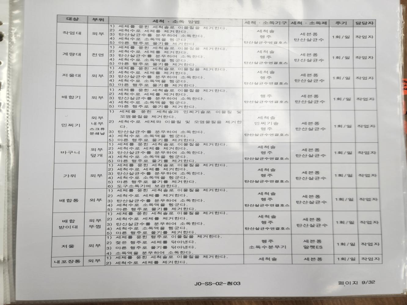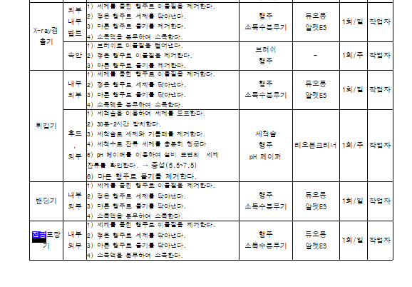 20. 시설 및 설비 등에 대한 세척/소독 관리 기준이 구비되어 있으며, 적절히 운영되는가(CIP 포함)