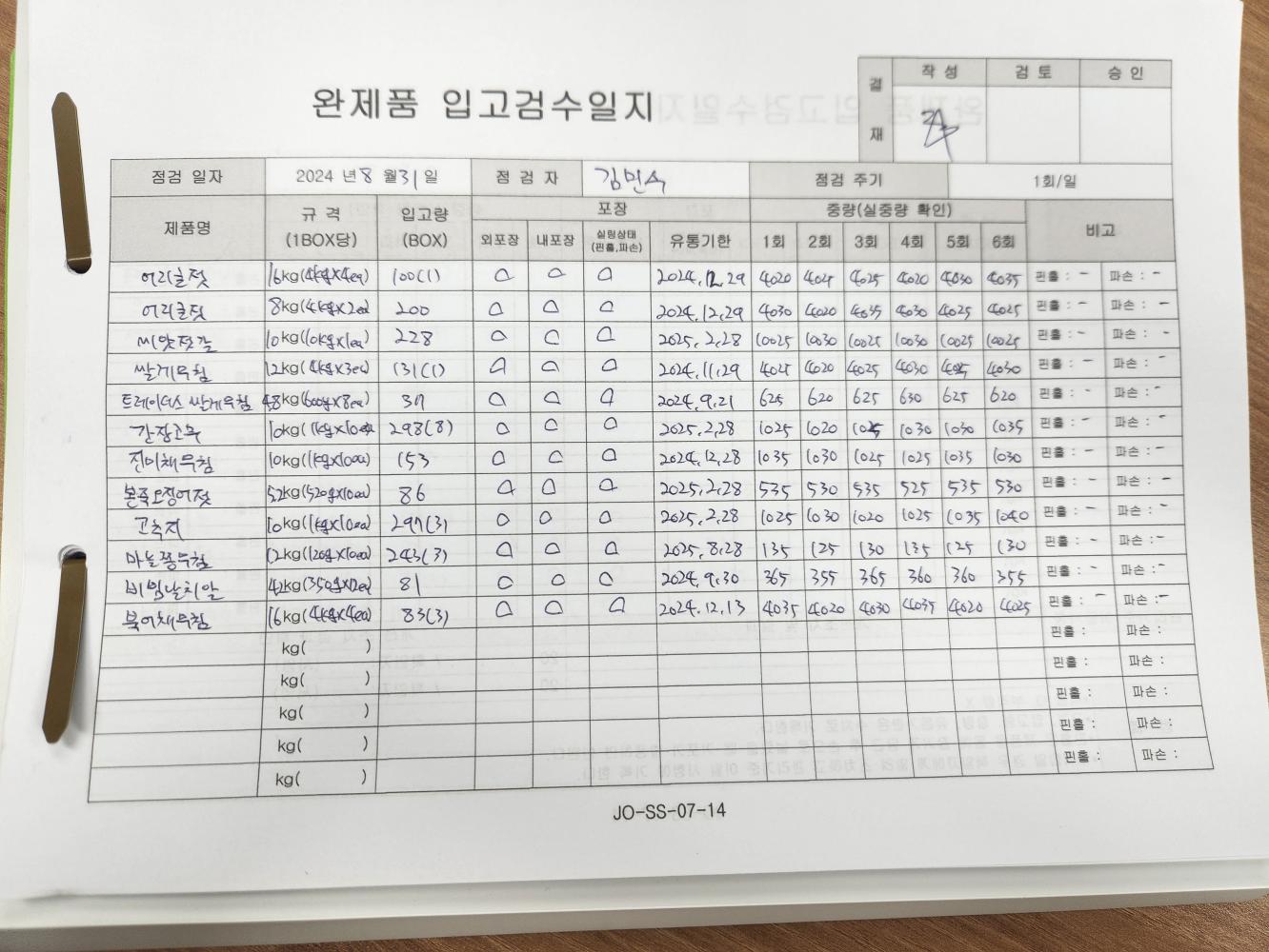 7. 제품별 규격서가 구비되어 있으며, 모니터링이 이행되고 있는가