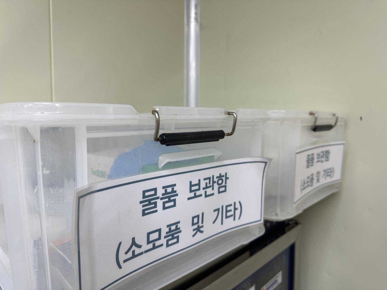 21. 청소 용품은 용도별로 구분되며, 적절히 보관되는가
