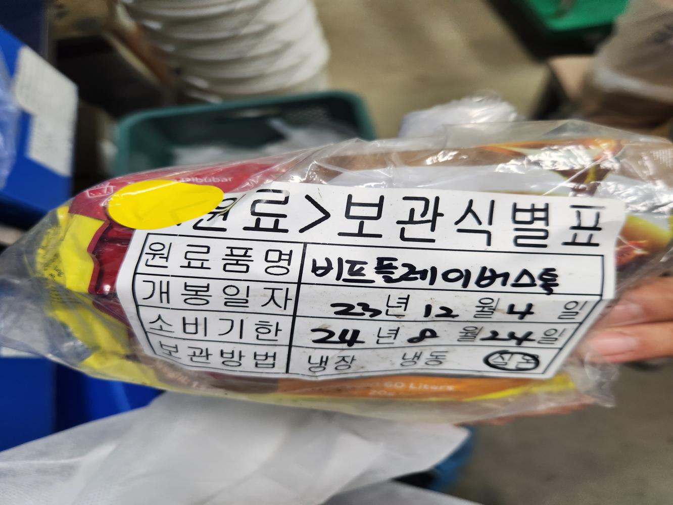 4. 보관/사용 대기 중인 원료 등의 식별표시가 적정한가(반제품, 공정품 포함)