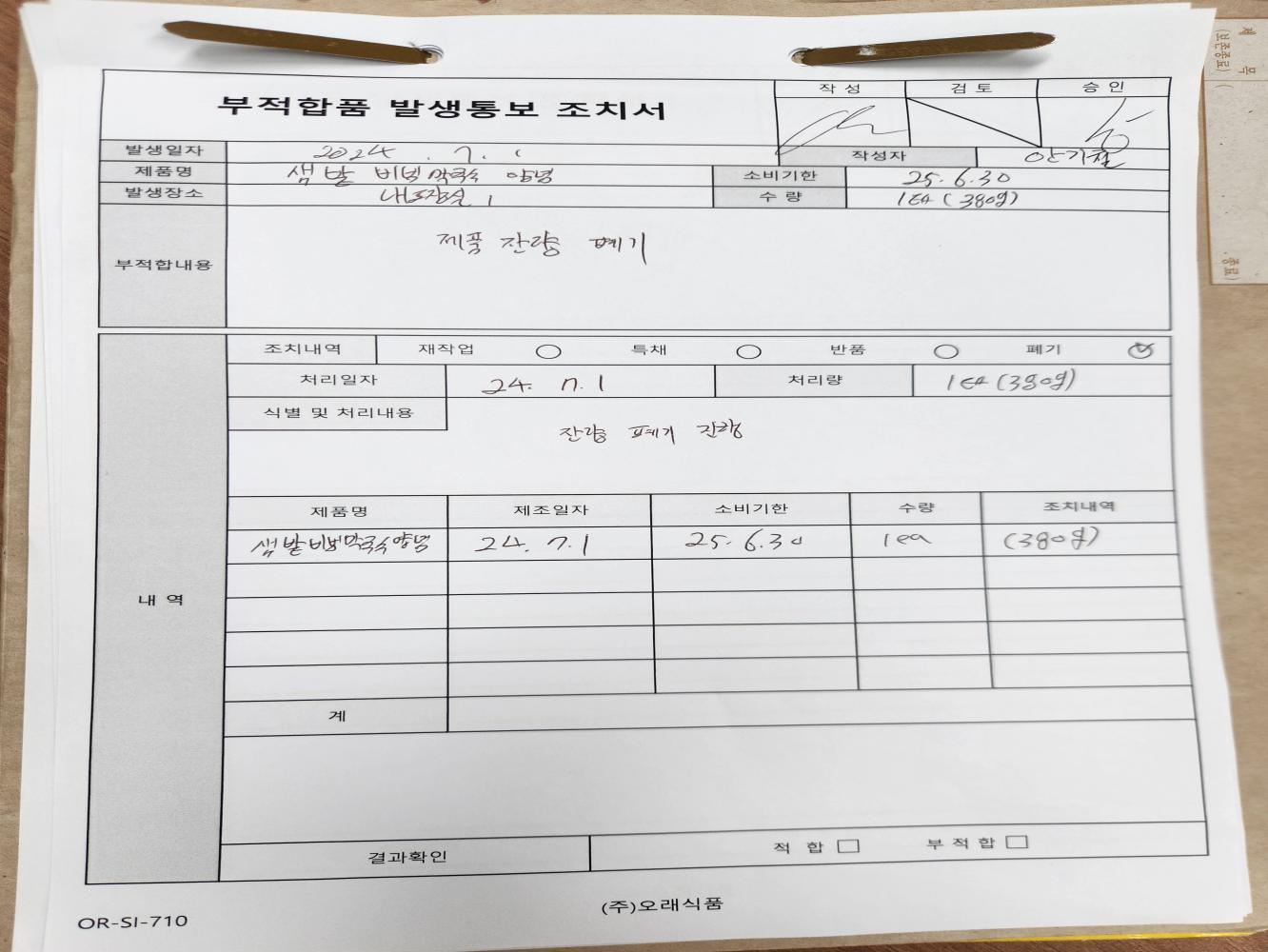 부적합 내용
