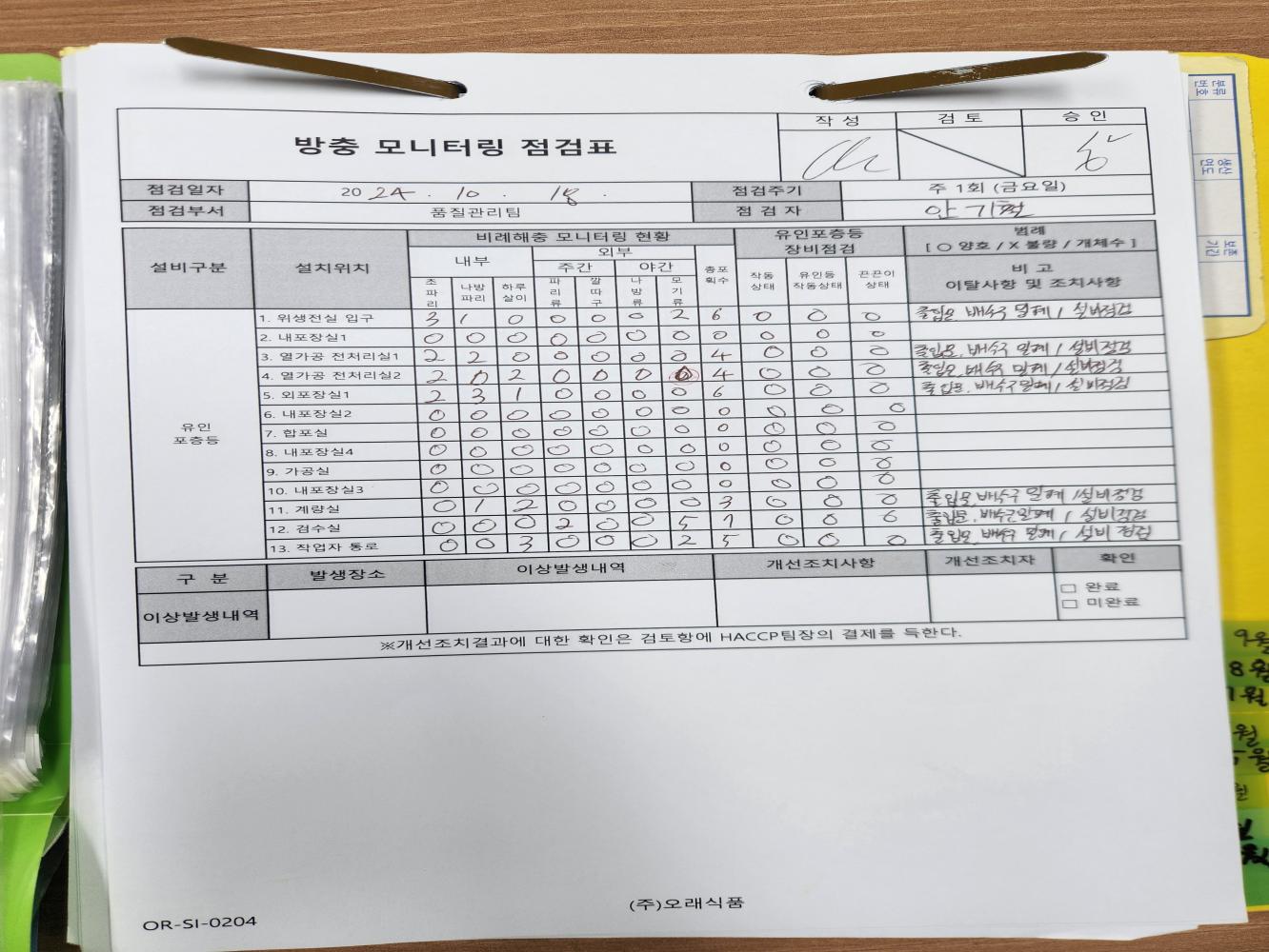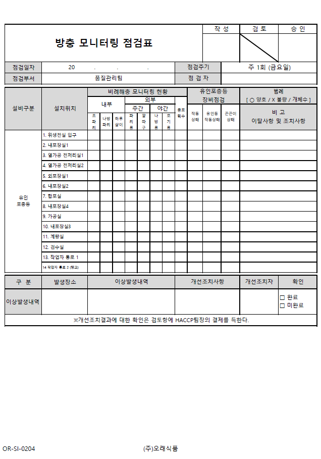13. 방충/방서 관리 기준이 구비되어 있으며, 적절히 이행되는가