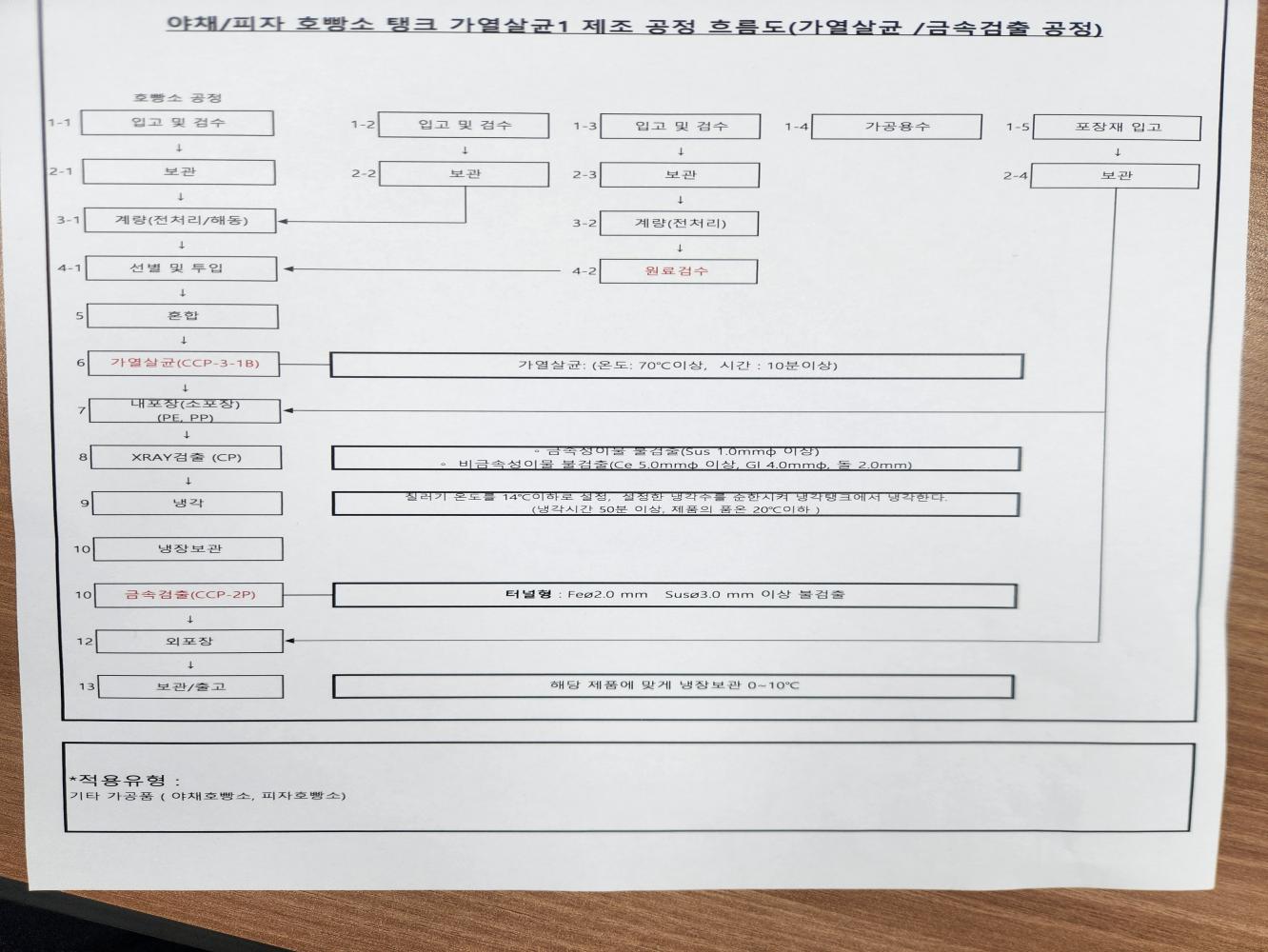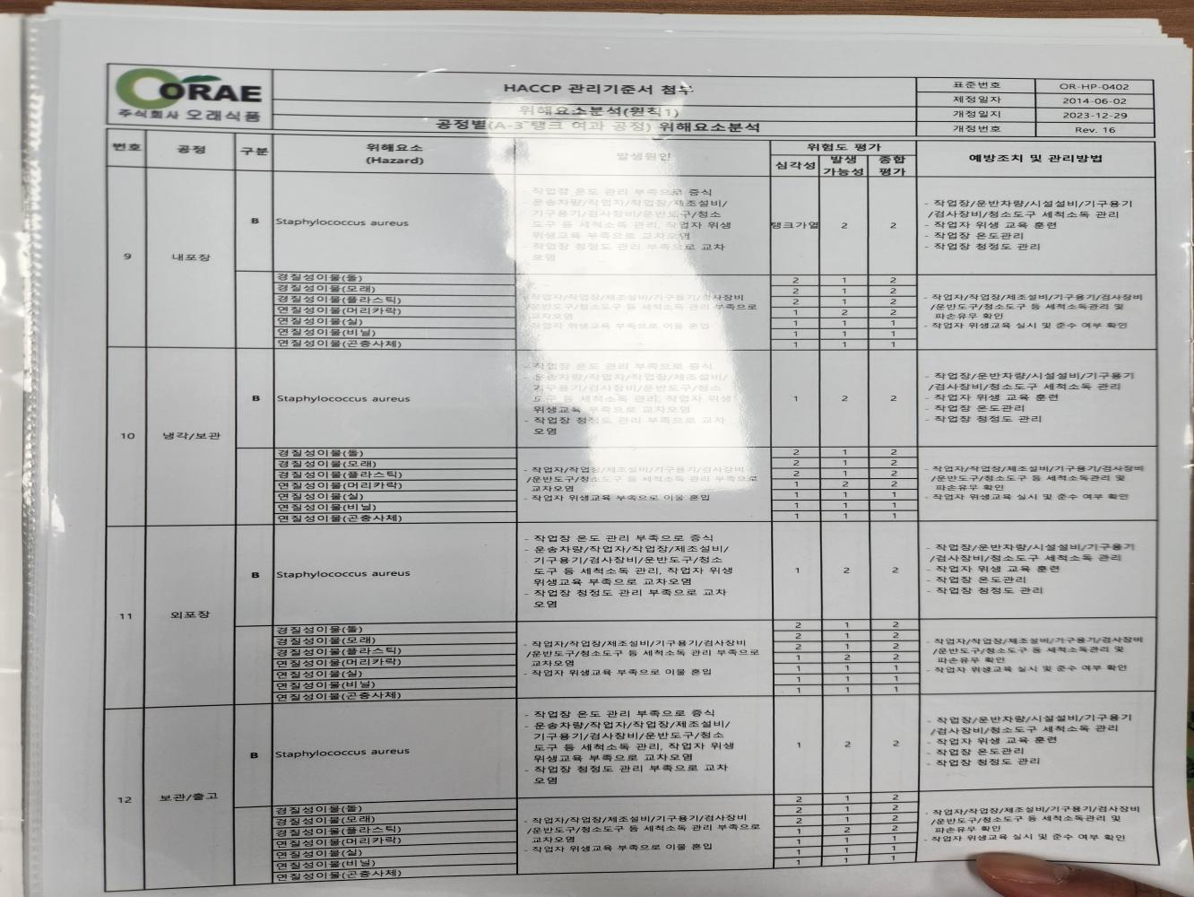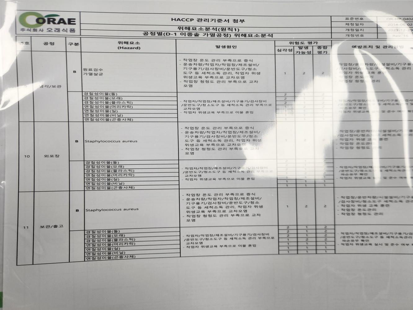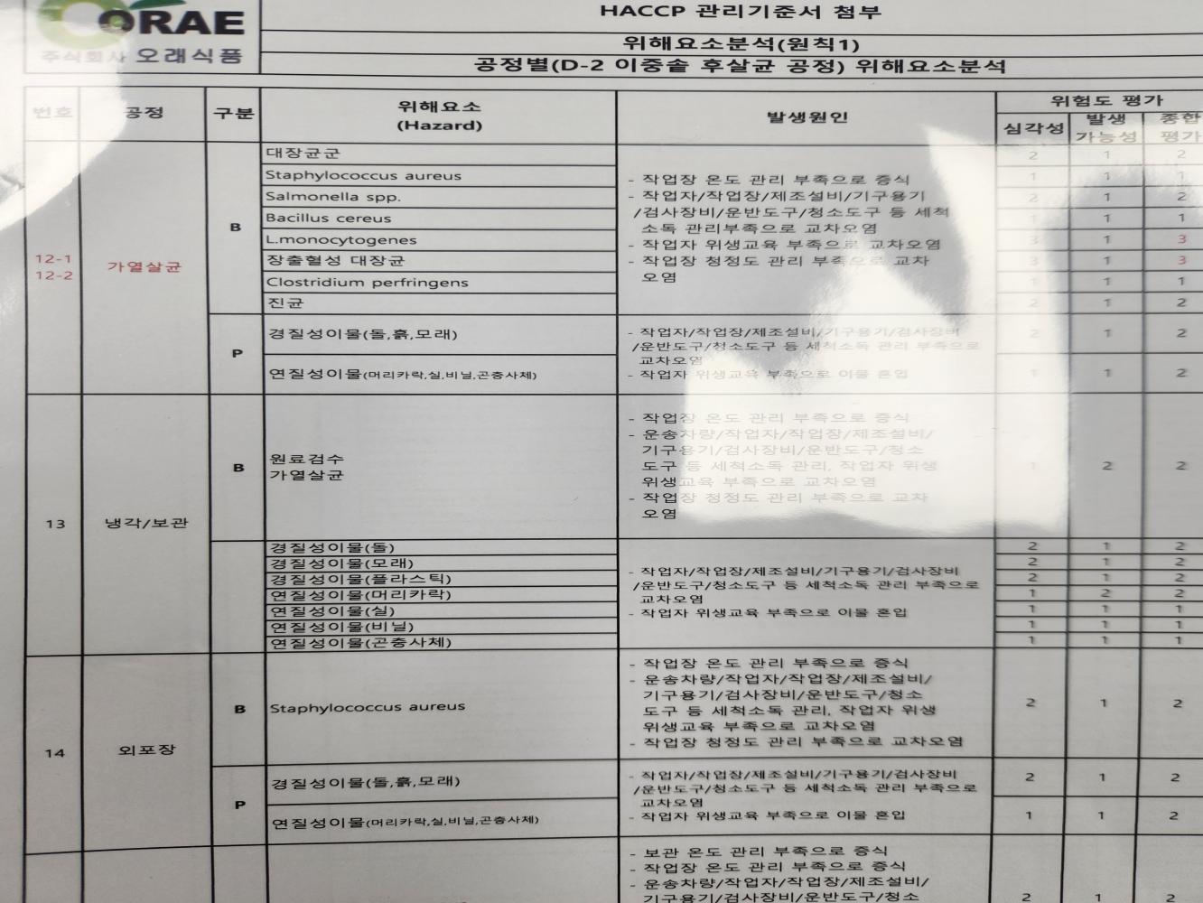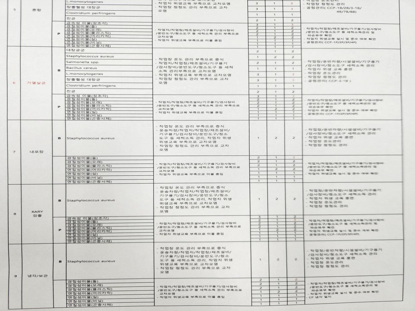 19. 원료별, 공정별 위해요소 분석이 실시되었으며, CCP 결정 및 운영이 적정한가