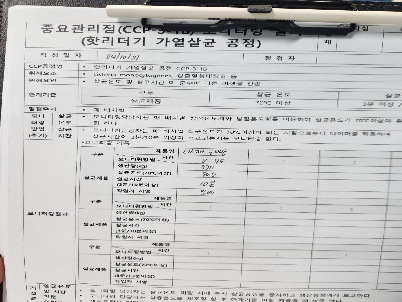 20. CCP 모니터링 및 개선 조치가 이행되고 있는가