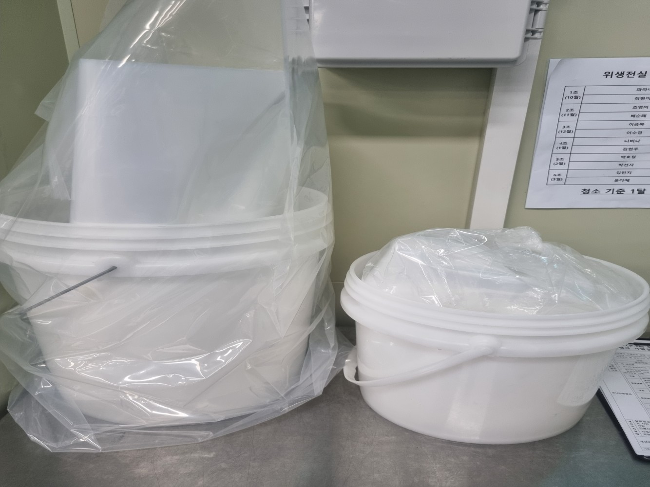 16. 청소 용품은 용도별로 구분되며, 적절히 보관되는가