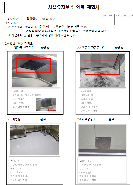 14. 시설은 청결하며, 자체 청소 기준에 따라 관리되고 있는가