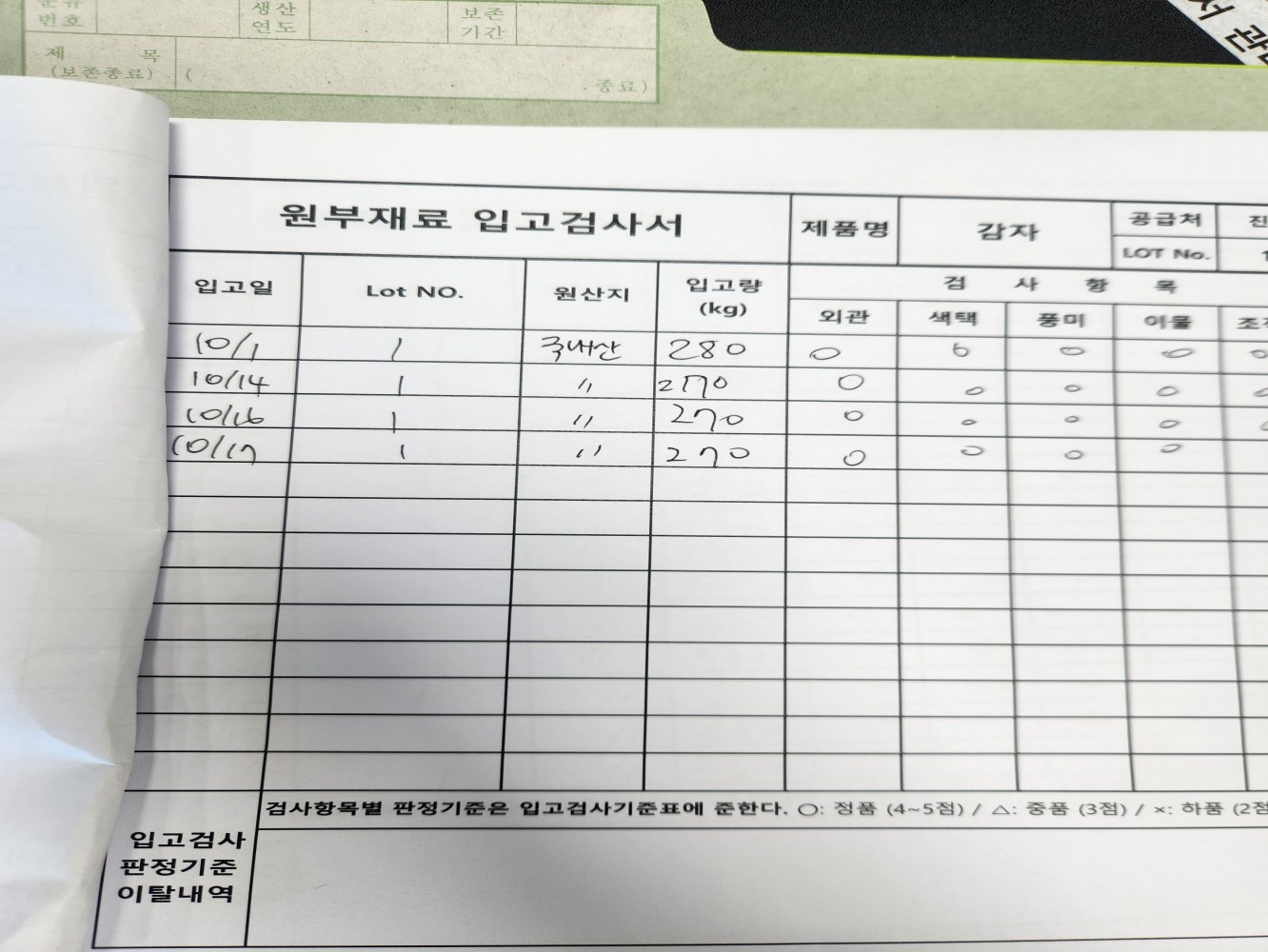3. 원부재료 및 포장재 입고 검사 및 검수를 실시하고 있는가