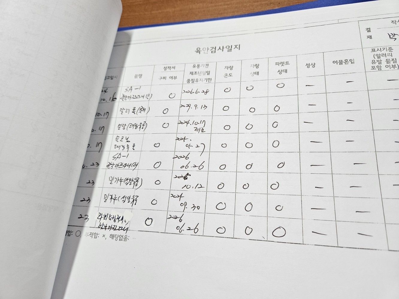 3. 원부재료 및 포장재 입고 검사 및 검수를 실시하고 있는가