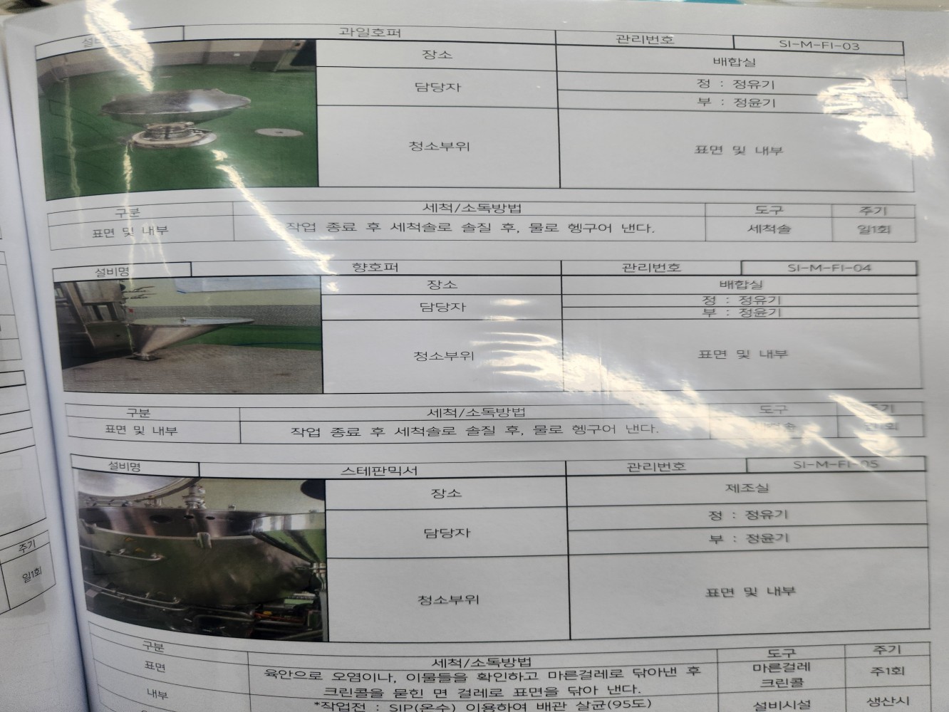 17. 시설 및 설비 등에 대한 세척/소독 관리 기준이 구비되어 있으며, 적절히 운영되는가(CIP 포함)