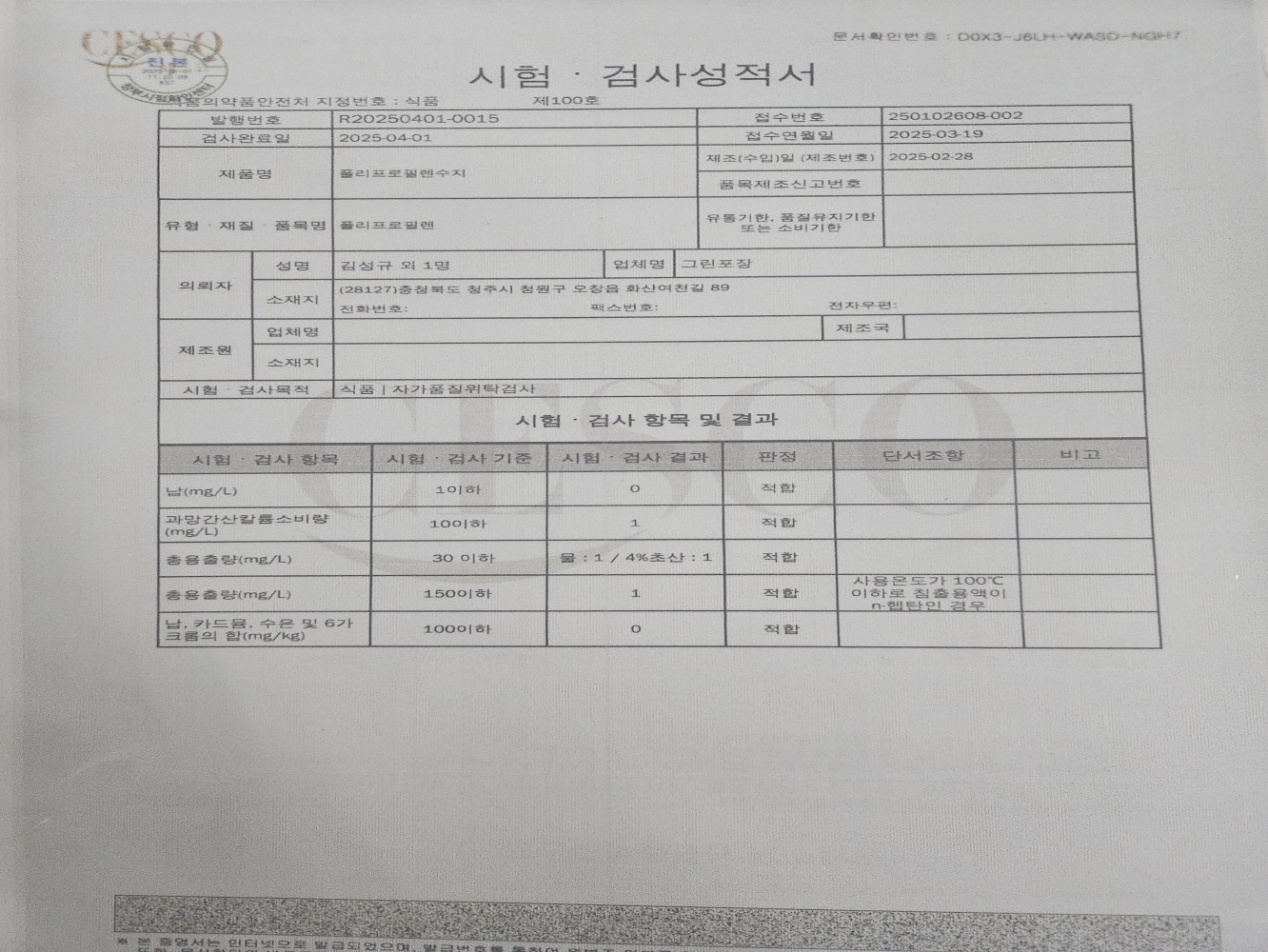 3. 원부재료 및 포장재 입고 검사 및 검수를 실시하고 있는가