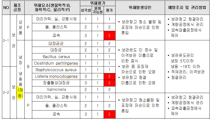 18. 원료별, 공정별 위해요소 분석이 실시되었으며, CCP 결정 및 운영이 적정한가