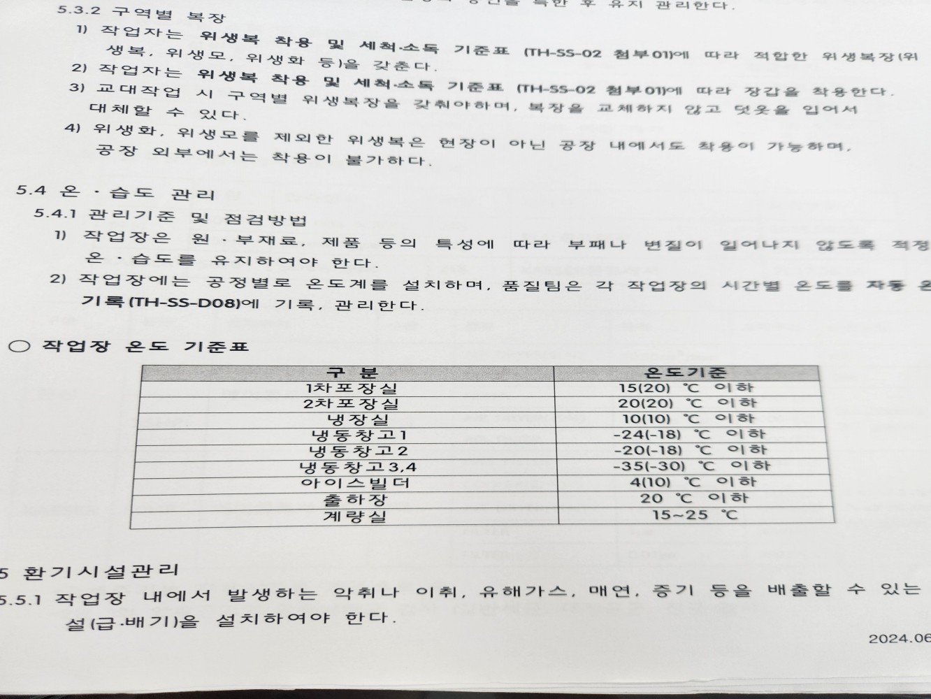 11. 작업 구역별 온/습도 기준이 수립되어 있으며, 적절히 운영되는가