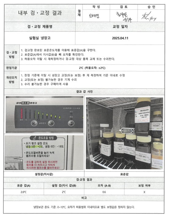 9. 일반 계측 장비는 주기적으로 검교정되며, 관련 기록이 구비되어 있는가