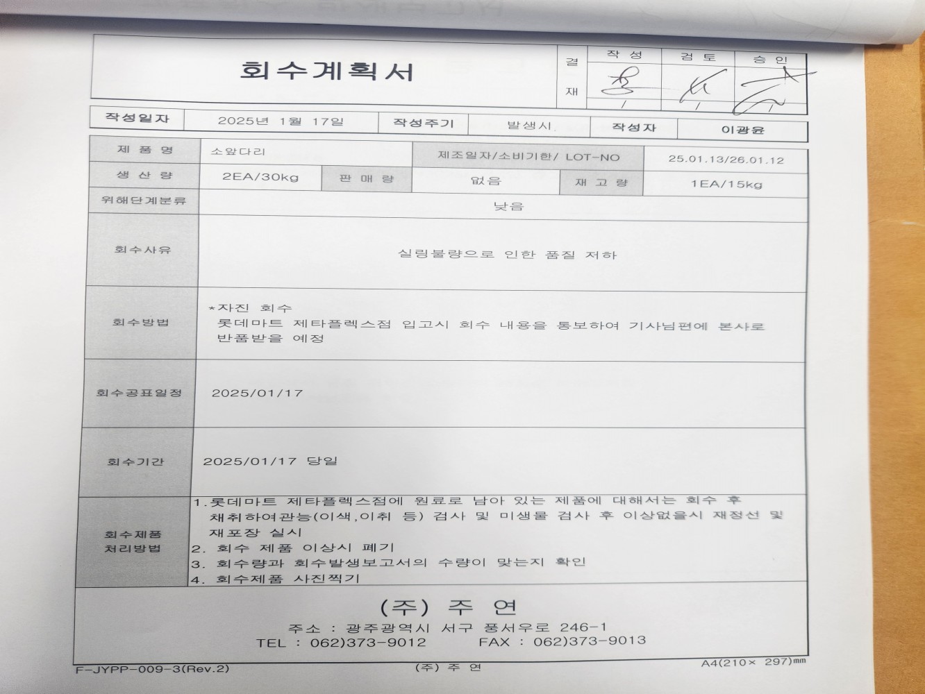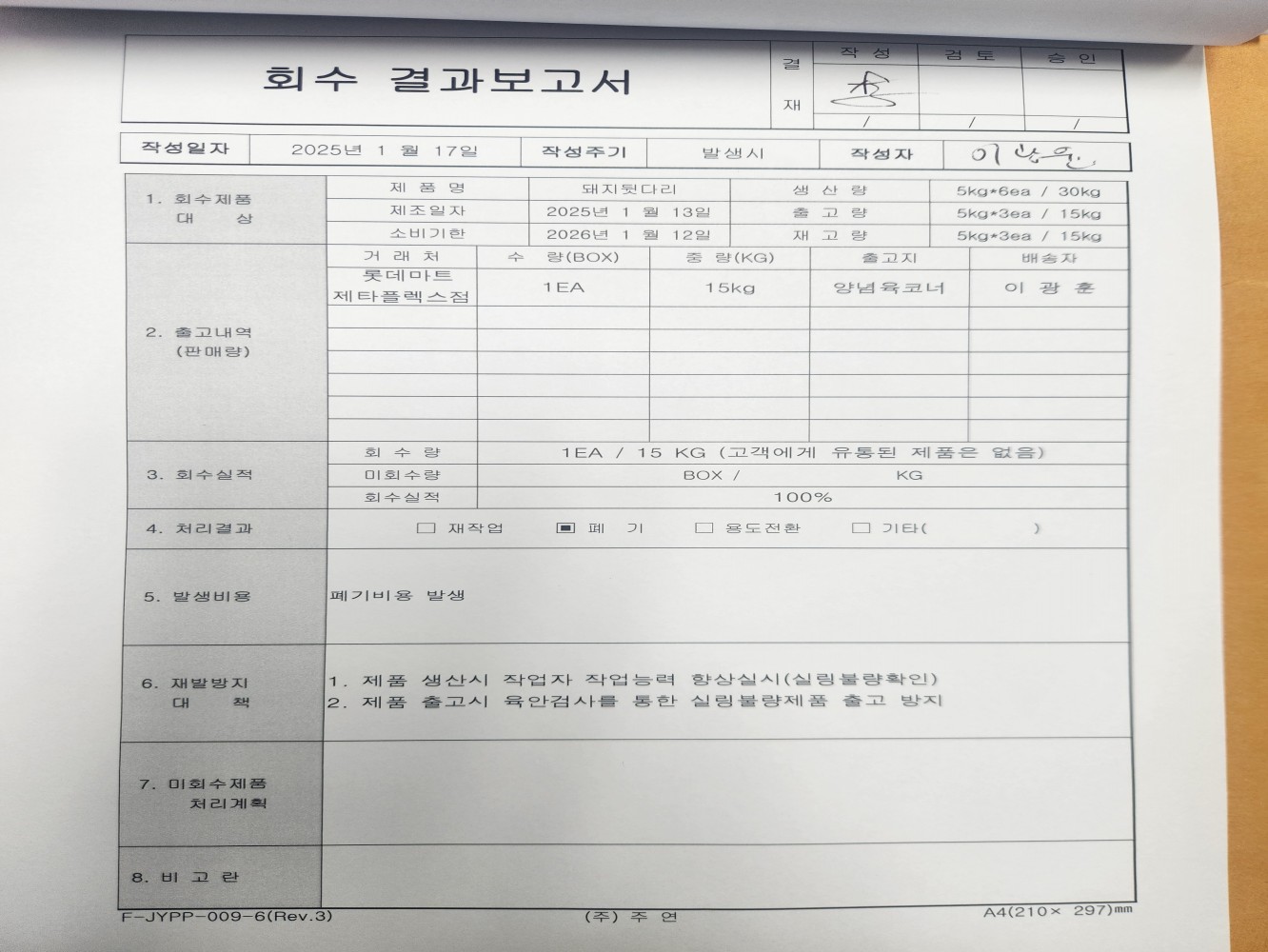 5. 회수 관리 기준이 구비되어 있으며, 모의 회수가 적절히 실시되고 있는가