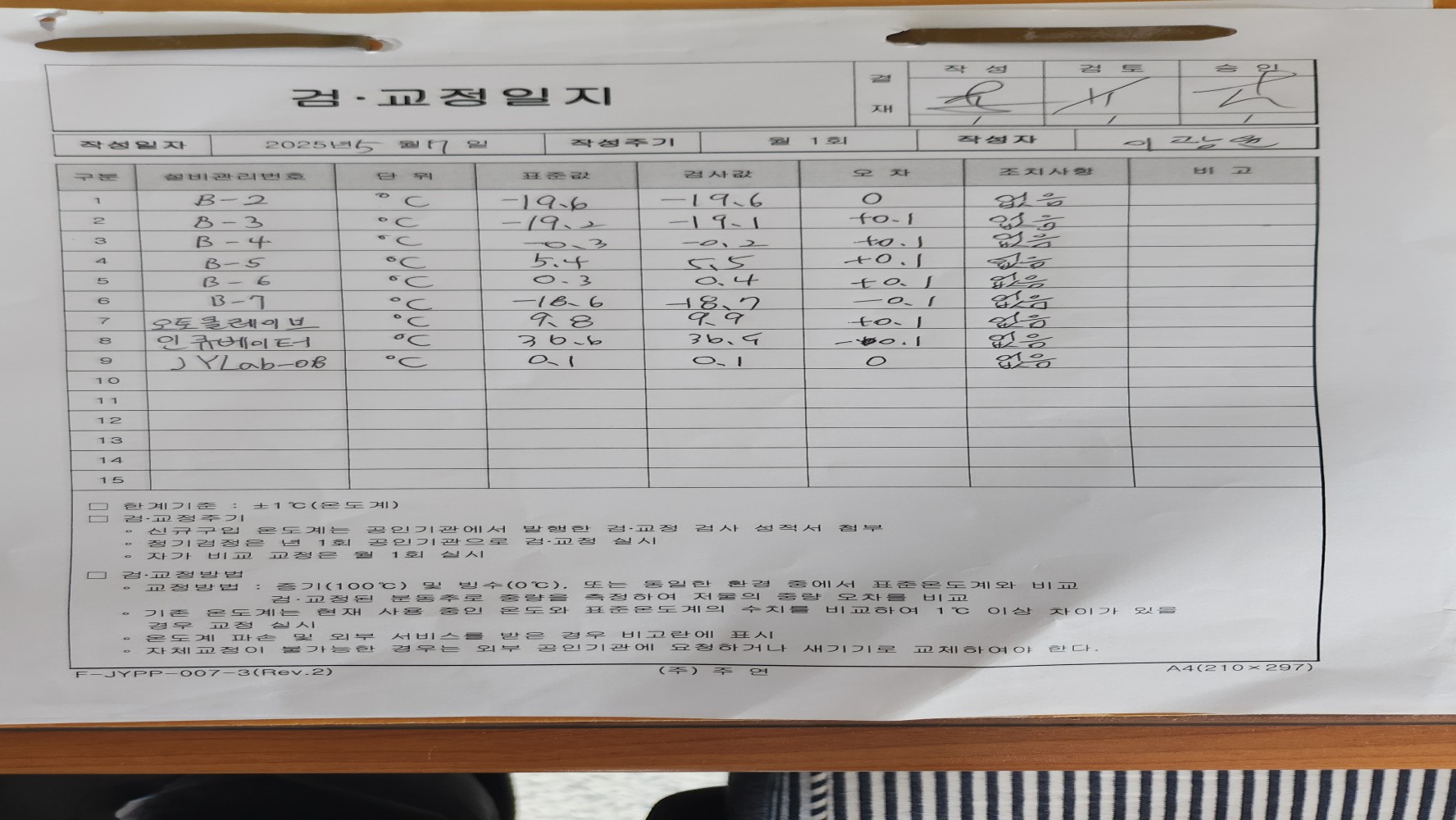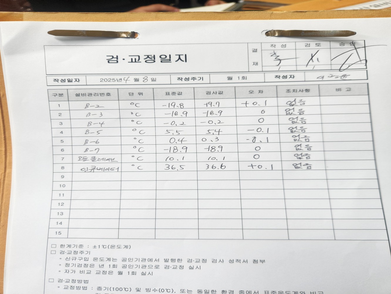 8. 일반 계측 장비는 주기적으로 검교정되며, 관련 기록이 구비되어 있는가