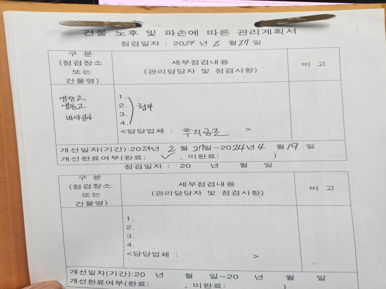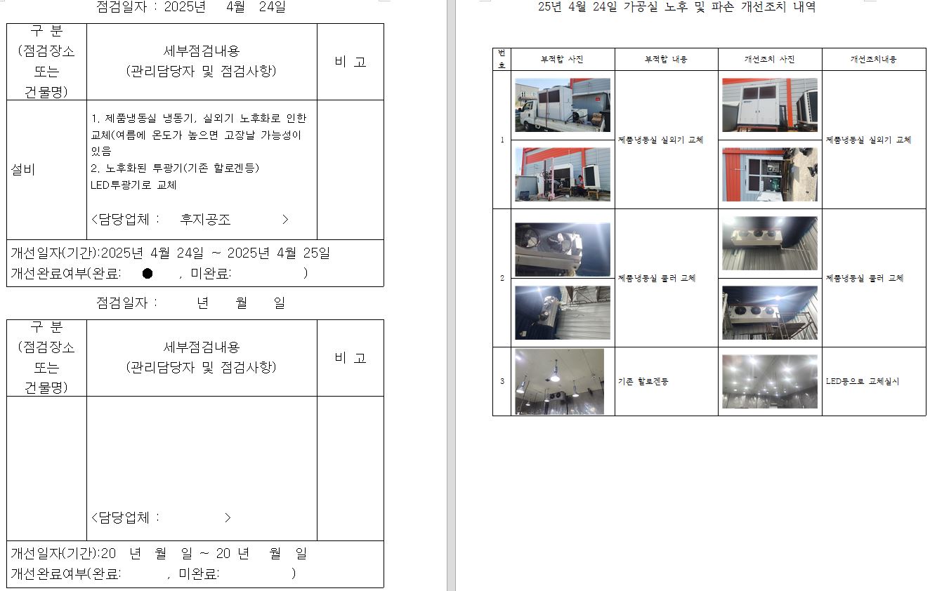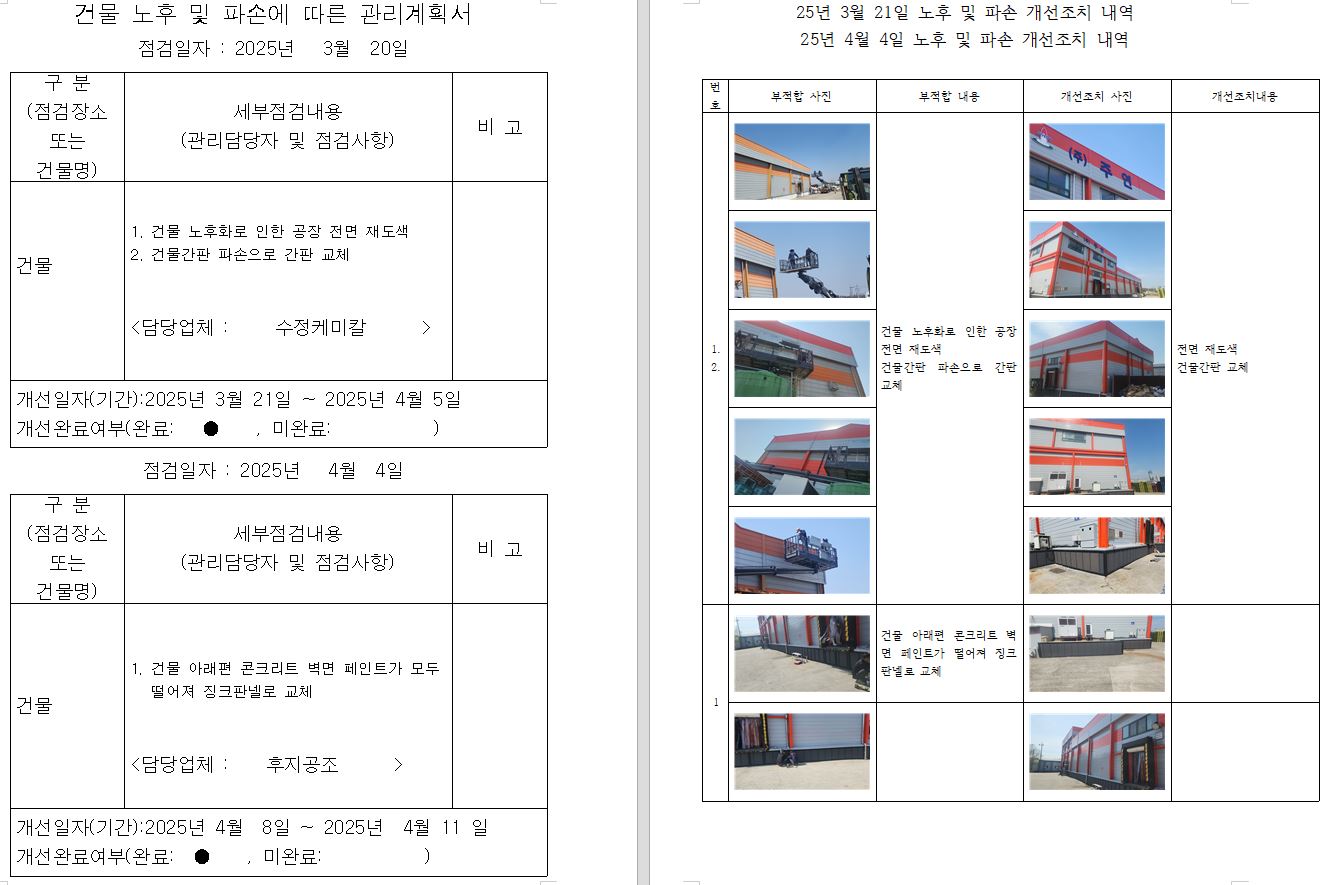 13. 시설 및 설비에 관한 점검/정비 계획이 구비되어 있으며, 관리 이력이 보관되고 있는가