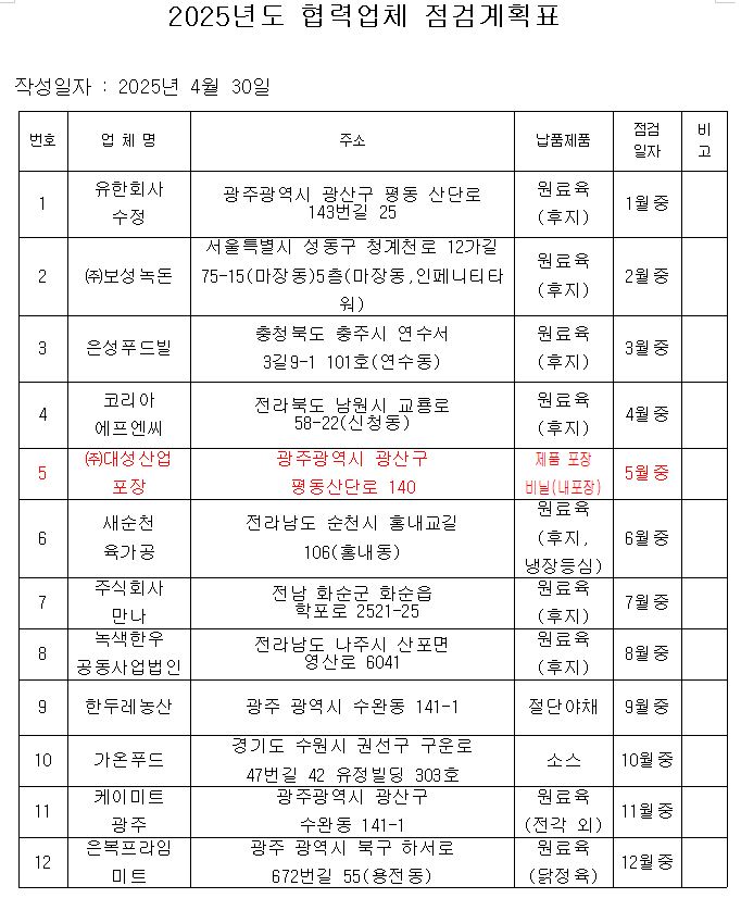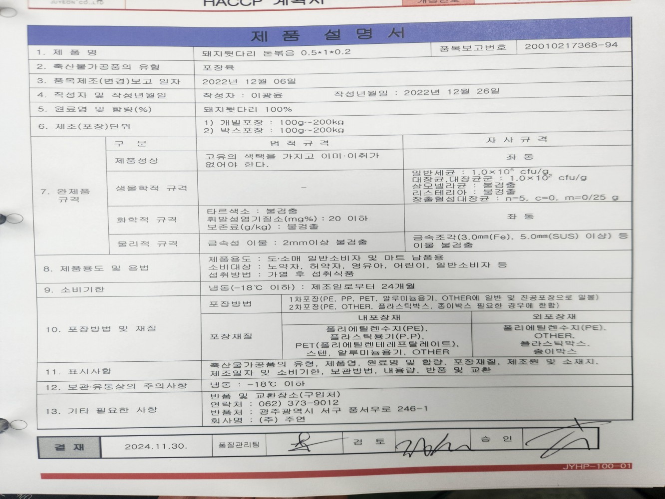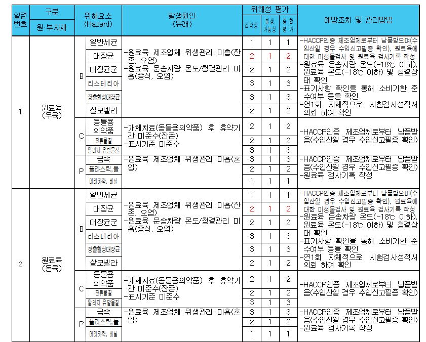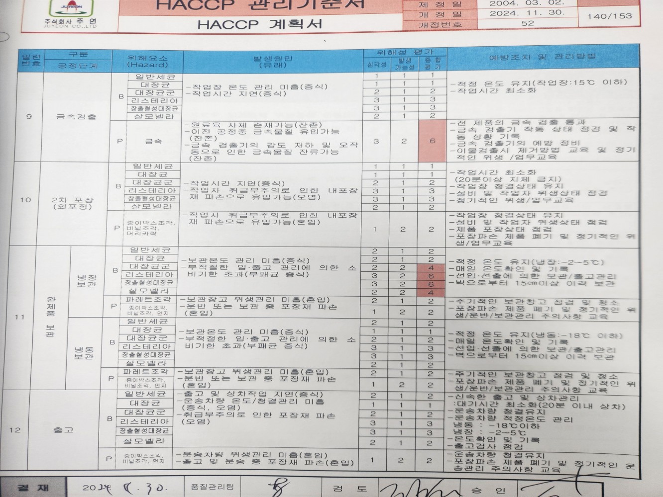 20. 원료별, 공정별 위해요소 분석이 실시되었으며, CCP 결정 및 운영이 적정한가