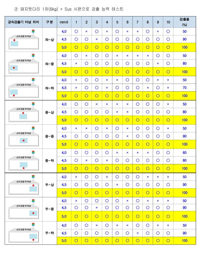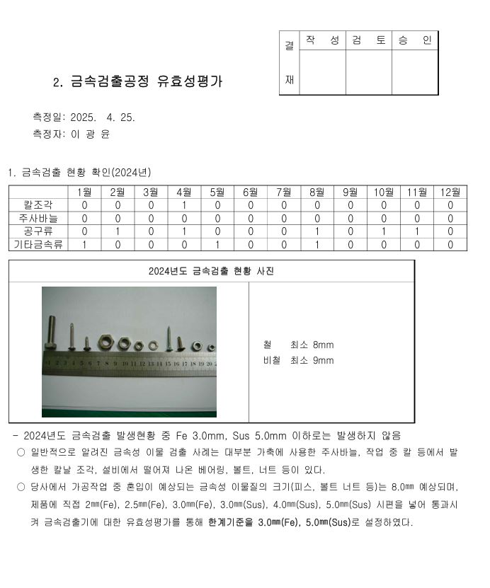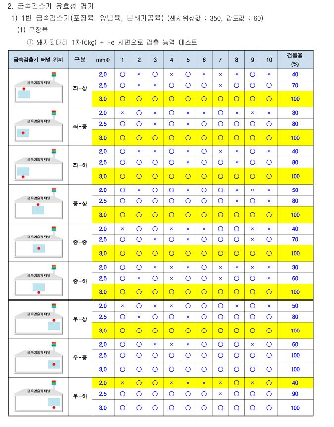 7. 이물 검출 장비가 구비되어 있으며, 적절히 운영되고 있는가