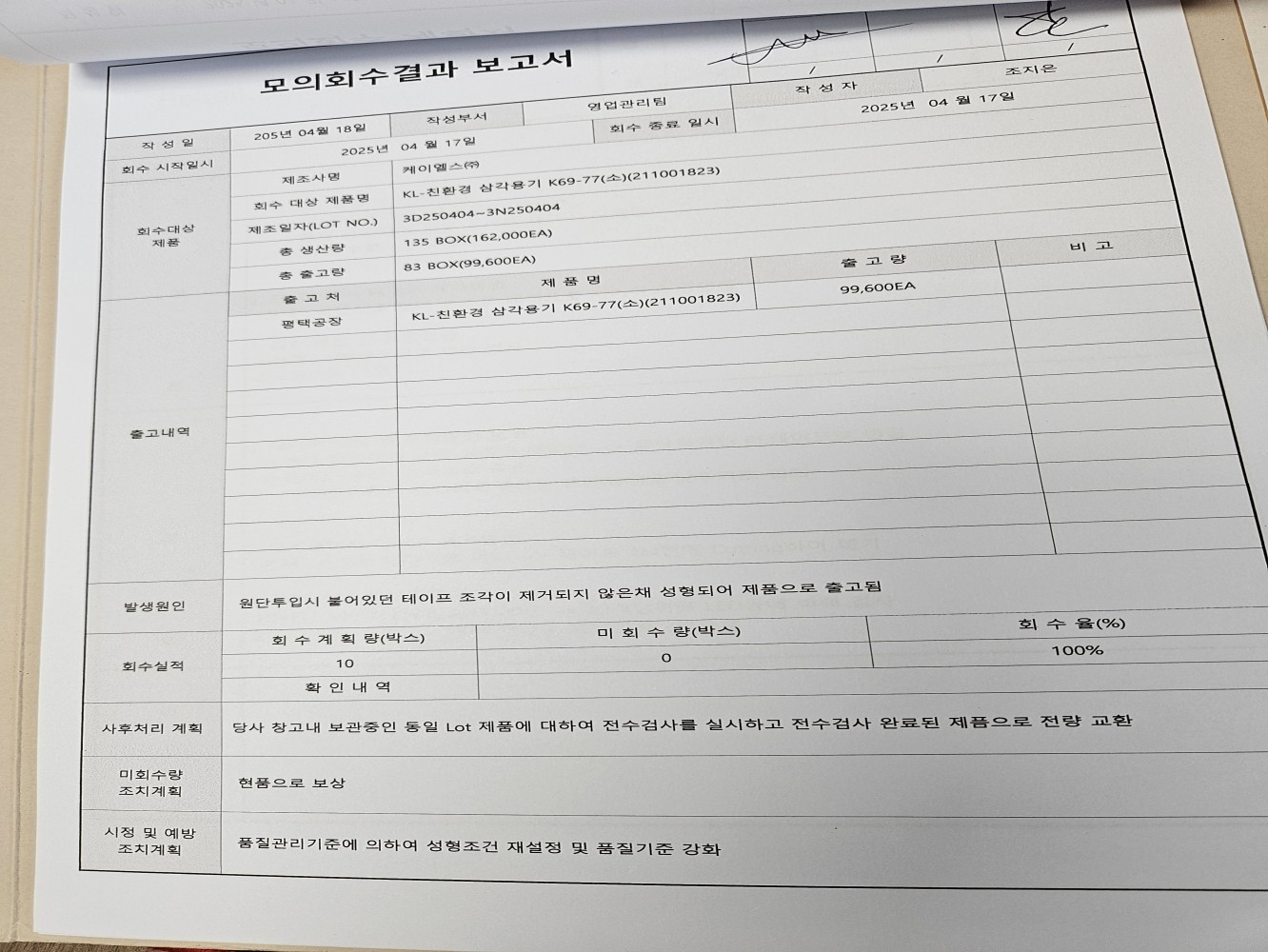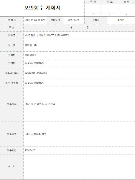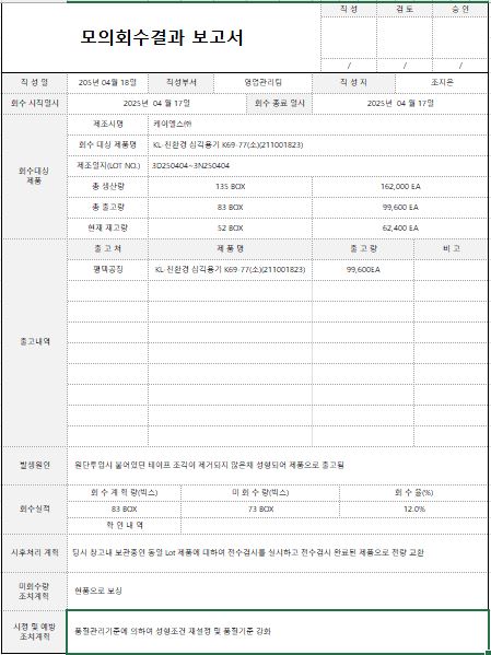 1. 회수 관리 기준이 구비되어 있으며, 모의 회수가 적절히 실시되고 있는가