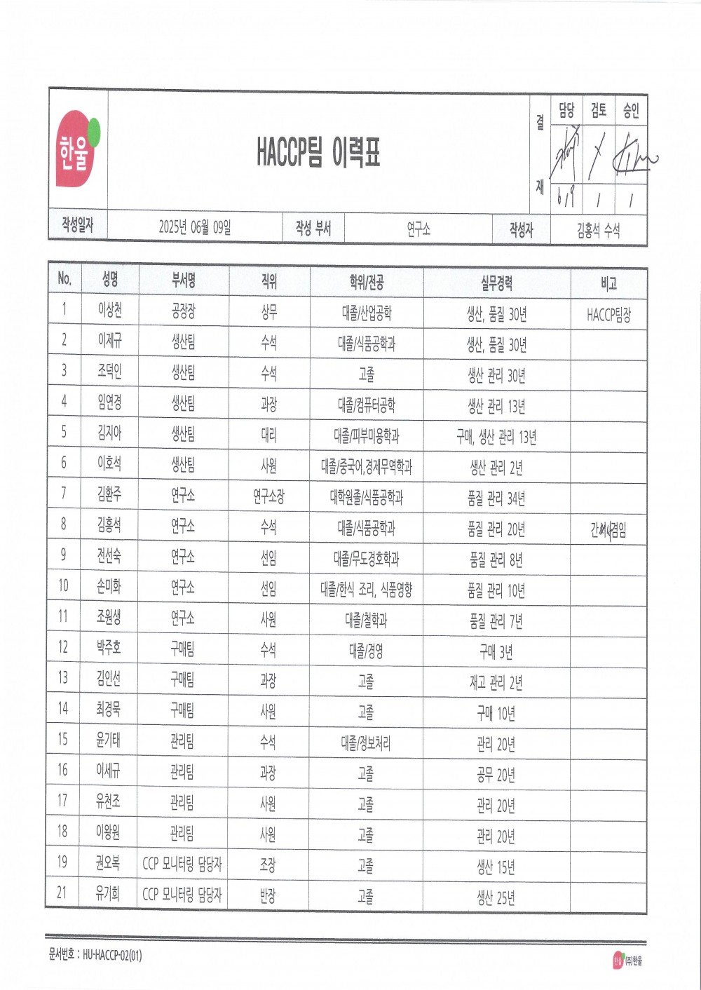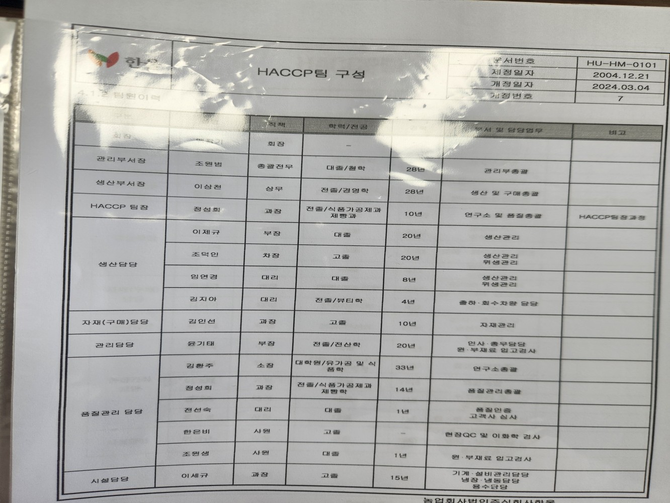 35. HACCP팀은 적절히 구성되어 있으며, 최신 버전으로 업데이트되어 있는가