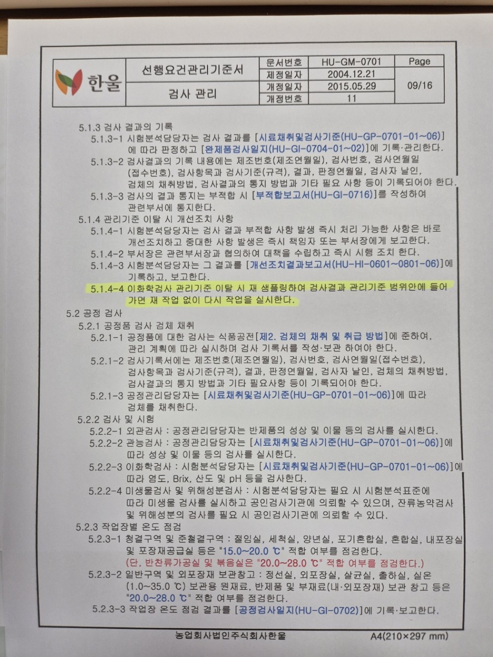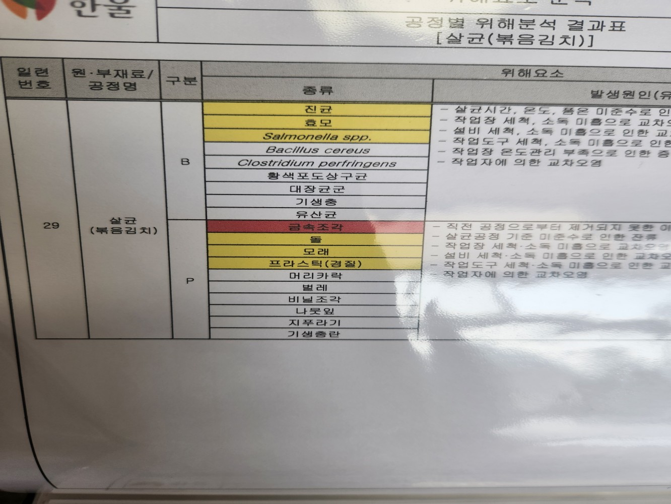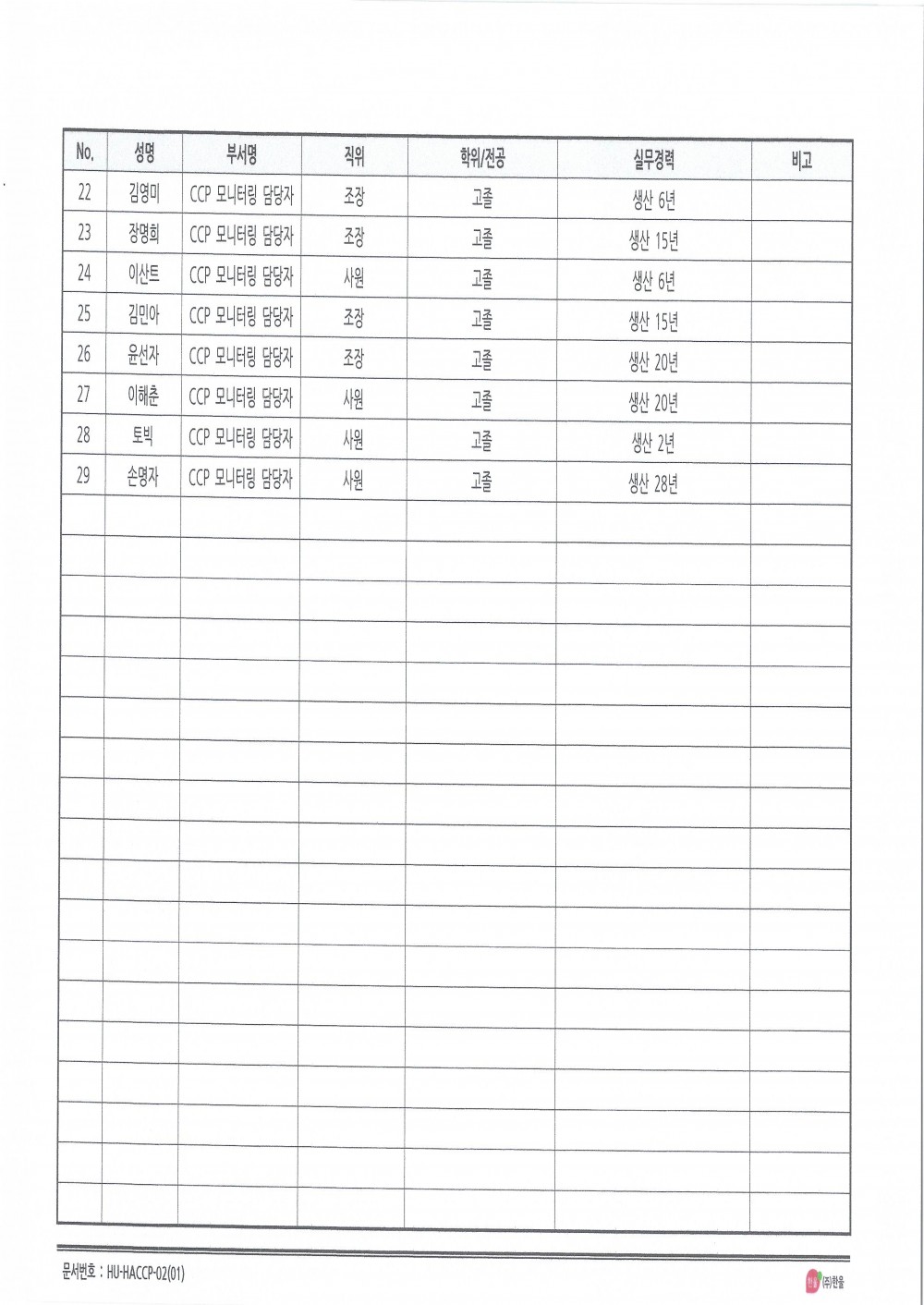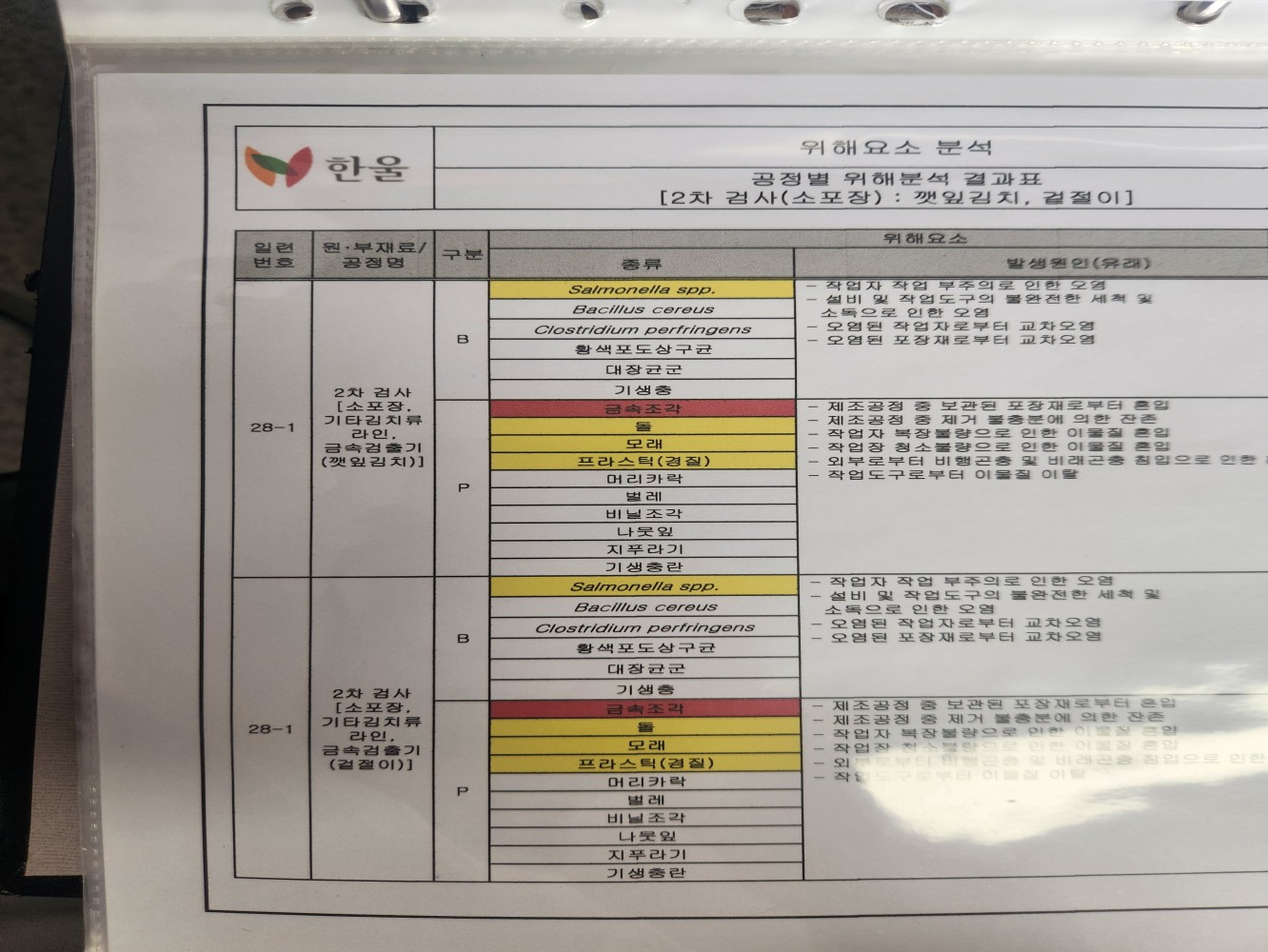 36. 원료별, 공정별 위해요소 분석이 실시되었으며, CCP 결정 및 운영이 적정한가