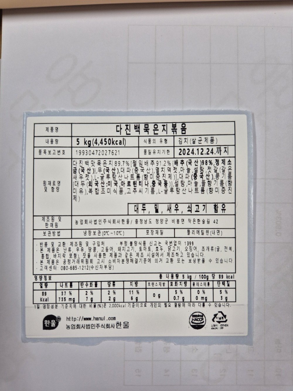 5. 원료 등은 위생적인 장소에서 올바르게 보관되고 있는가(포장재 포함)