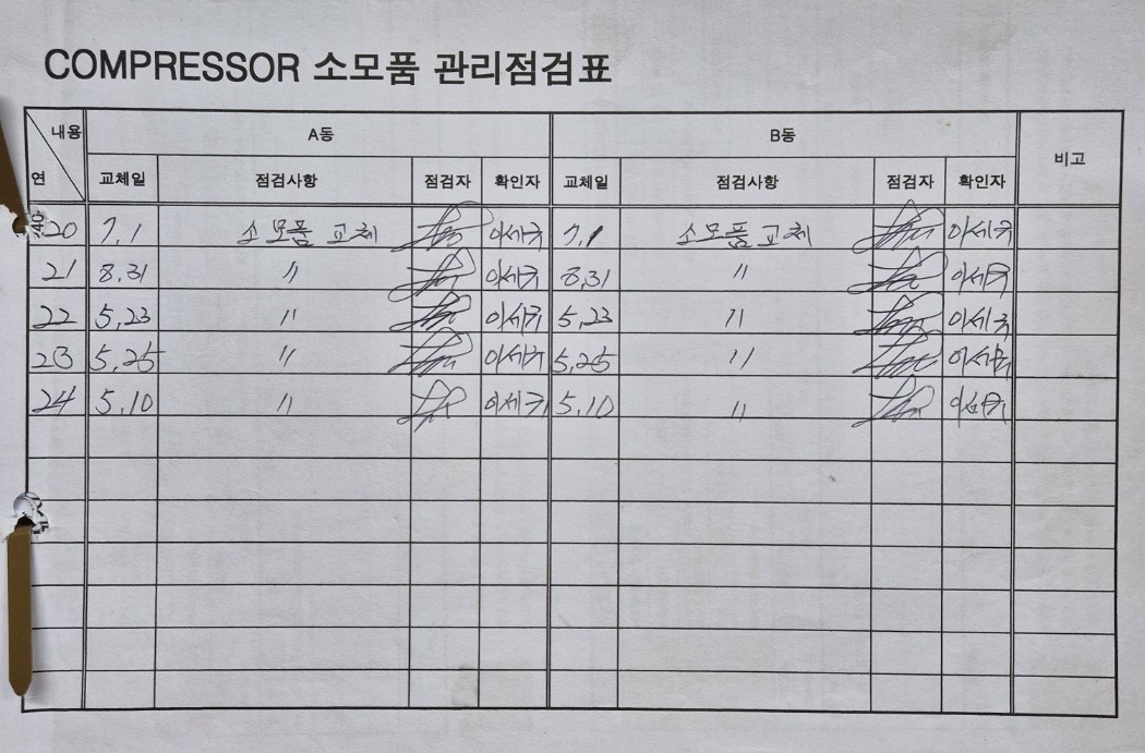 20. 압축 공기의 관리 기준이 구비되어 있으며, 적절히 사용되는가