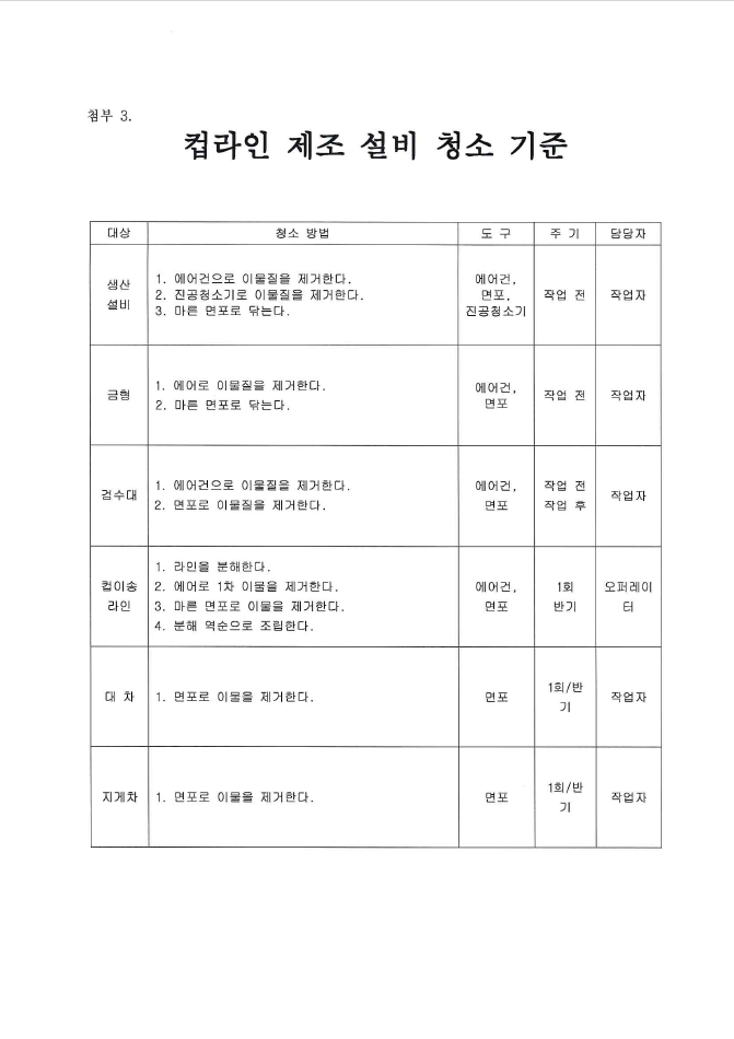 12. 설비는 청결하며, 자체 세척/소독 기준에 따라 관리되고 있는가
