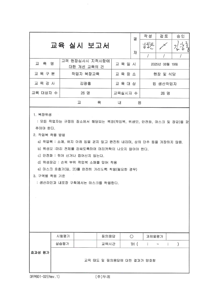 16. 복장 착용 기준이 구비되어 있으며, 관련 규정이 준수되고 있는가