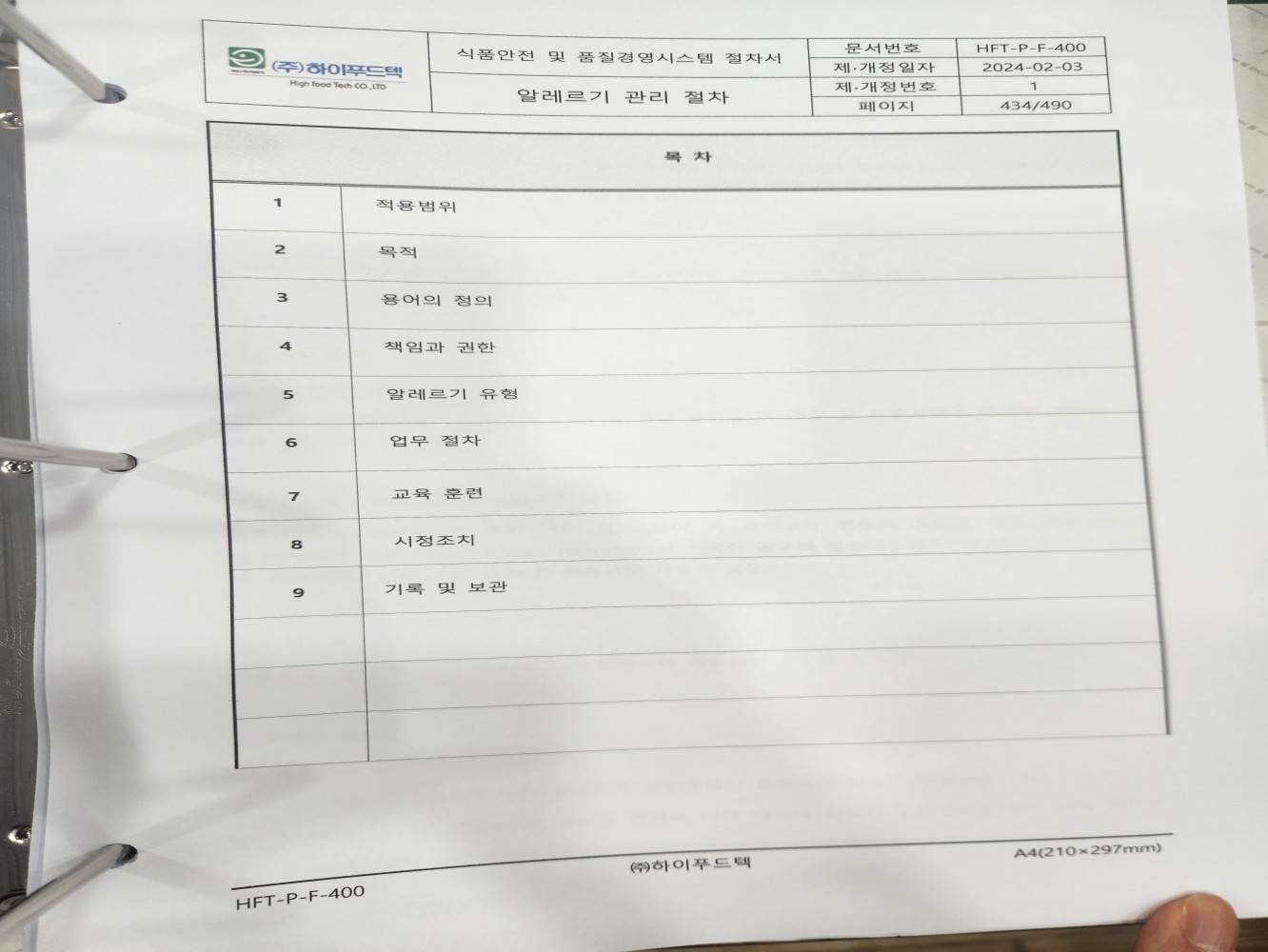 9. 이물 혼입에 대한 예방 관리가 적절히 운영되고 있는가