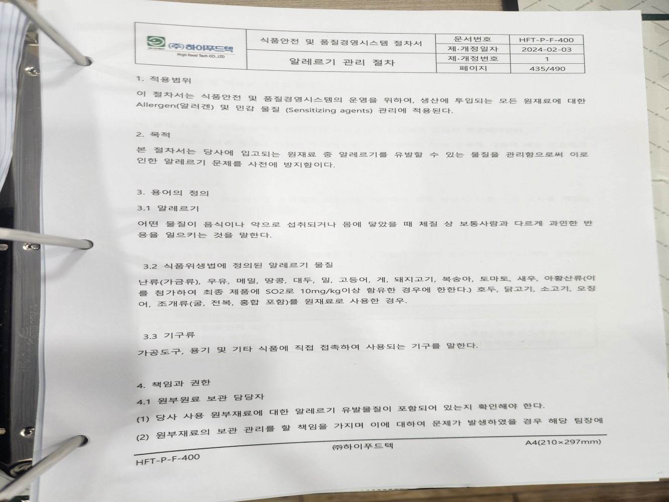 6. 특별 물질 관리 기준이 구비되어 있으며, 적절히 운영되는가(알레르기 유발물질, GMO, 유기농, 할랄 등)