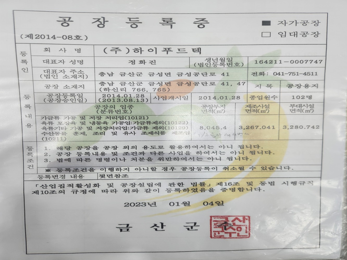 1. 영업 인허가 서류가 구비되어 있으며, 실제와 일치하는가