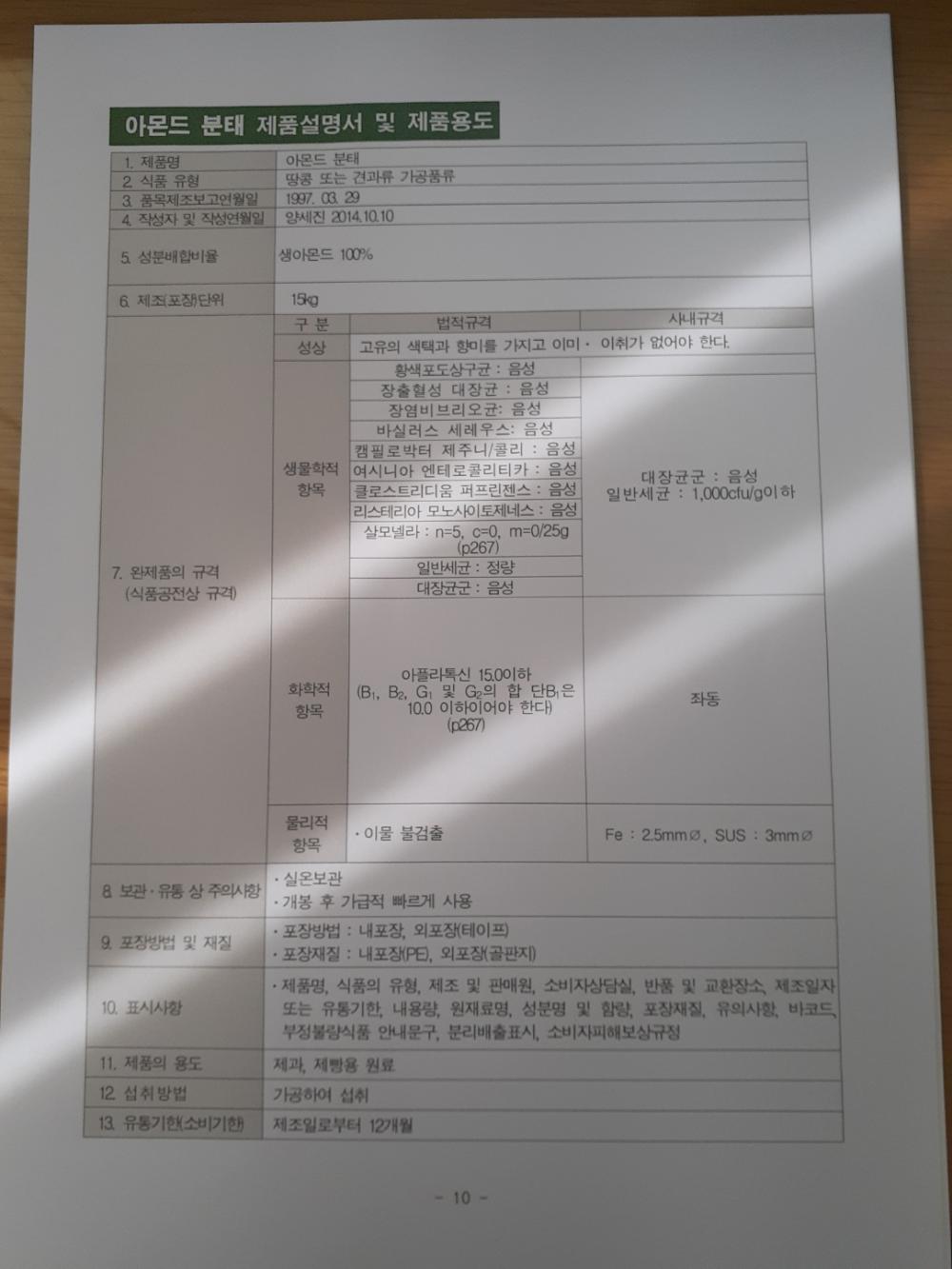 5. 제품별 규격서가 구비되어 있으며, 모니터링이 이행되고 있는가