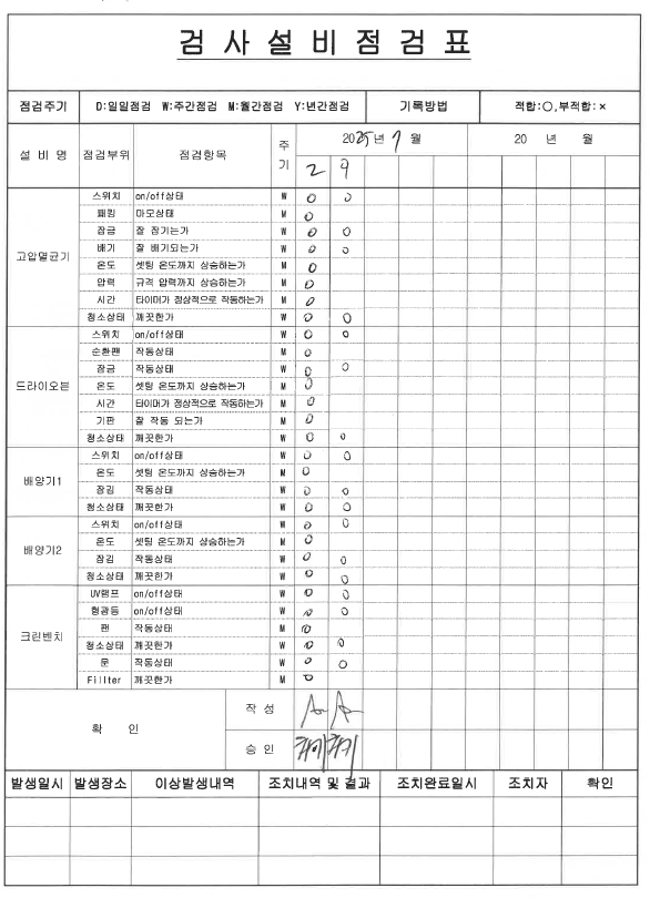 28. 세척 및 소독 효과가 주기적으로 검증되는가(환경 모니터링 포함)