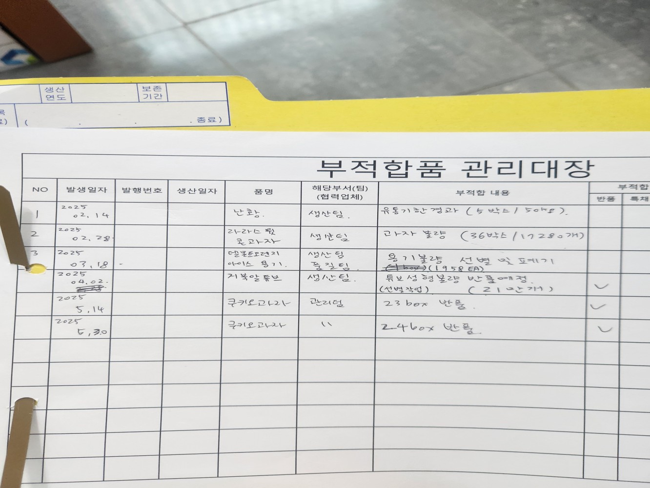 8. 부적합 제품 관리 시스템이 구비되어 있는가